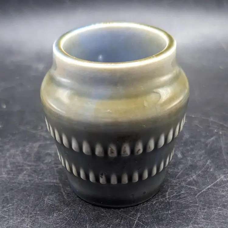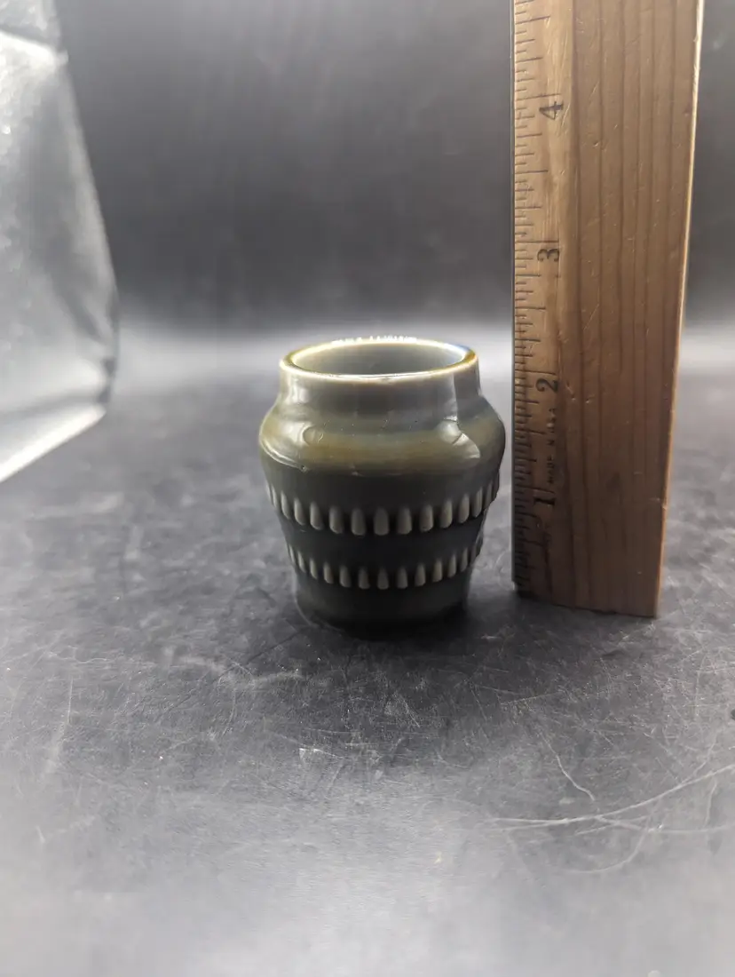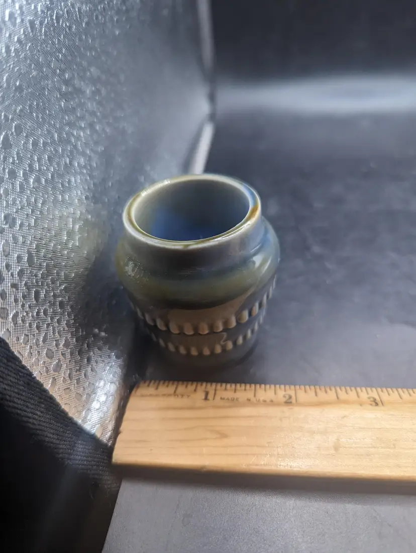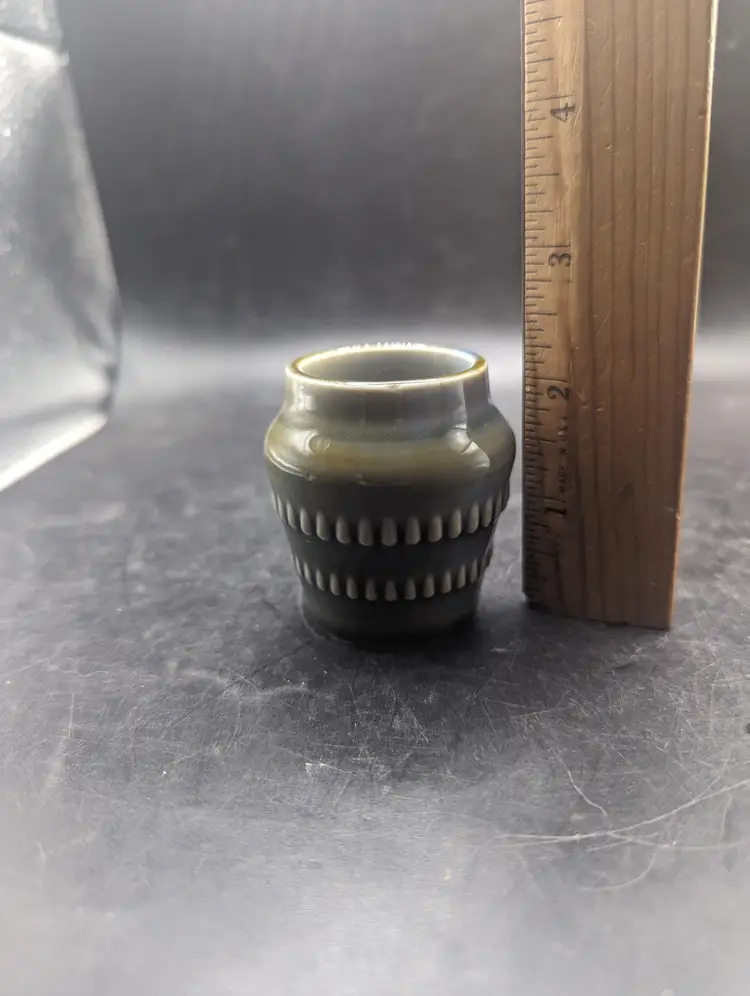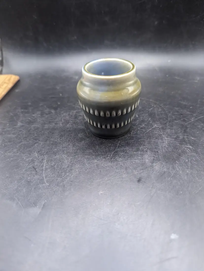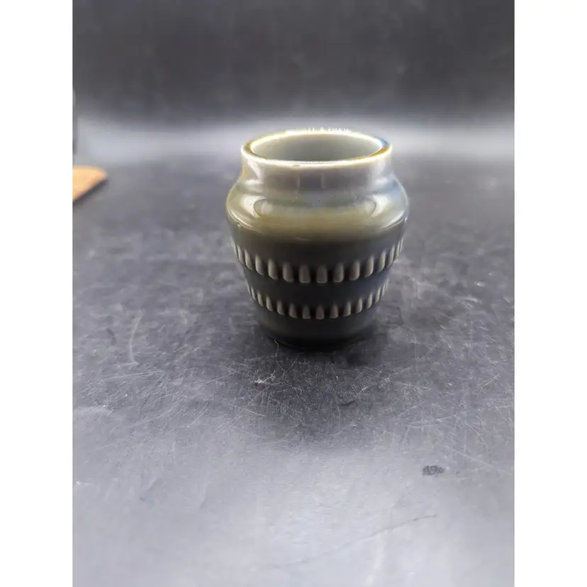 This charming vintage Vintage WADE Irish Porcelain Pondwater Glaze Bar Design 3" Mini Pot Vase has the classic blue and green design. Perfect for holding small treasures or air plant adding a touch of elegance to your decor. Please see all pictures for condition and measurements.