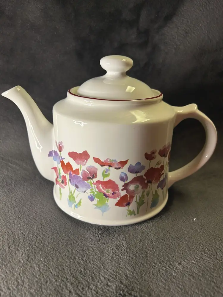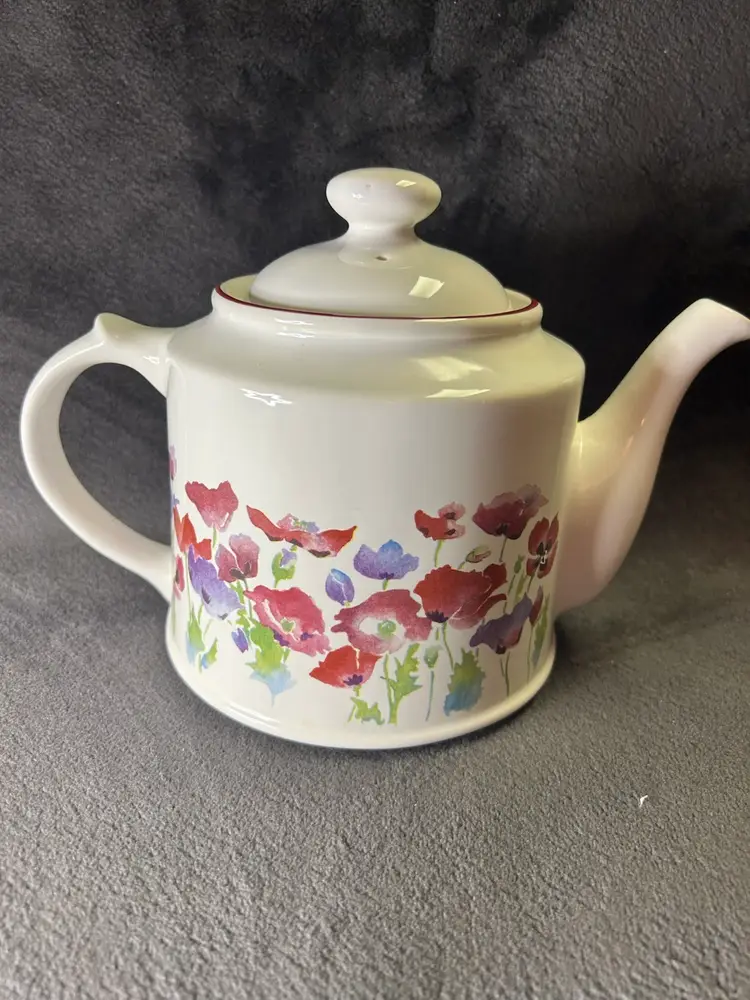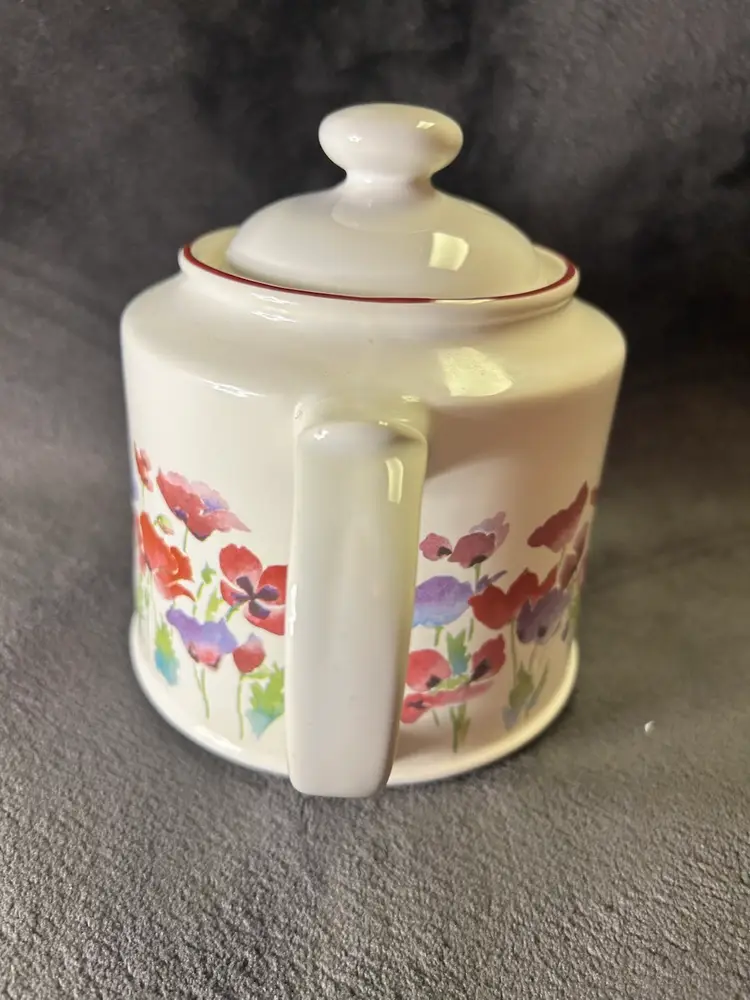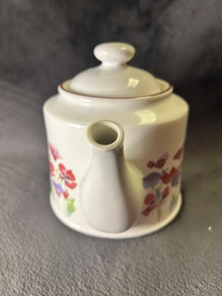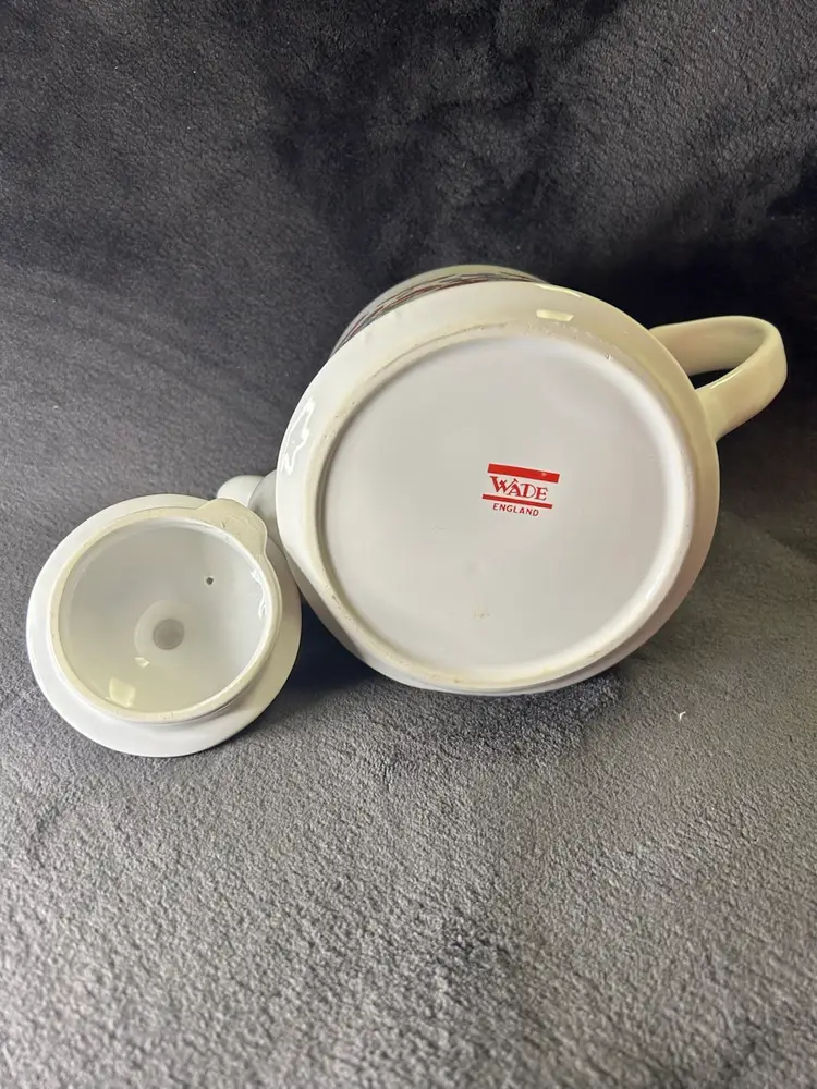 The Wade Poppy teapot was primarily manufactured in the 1980s. These teapots were a popular item sold at Boots, a UK retailer, during that time. The design features a red poppy motif and a classic retro style.