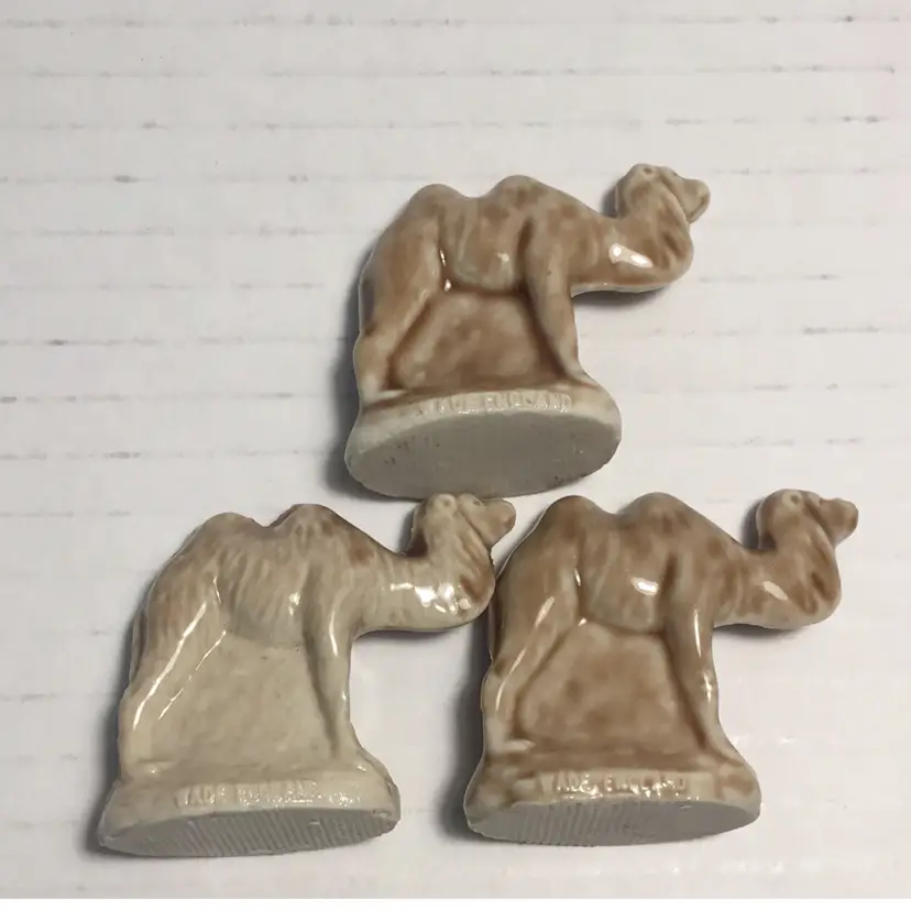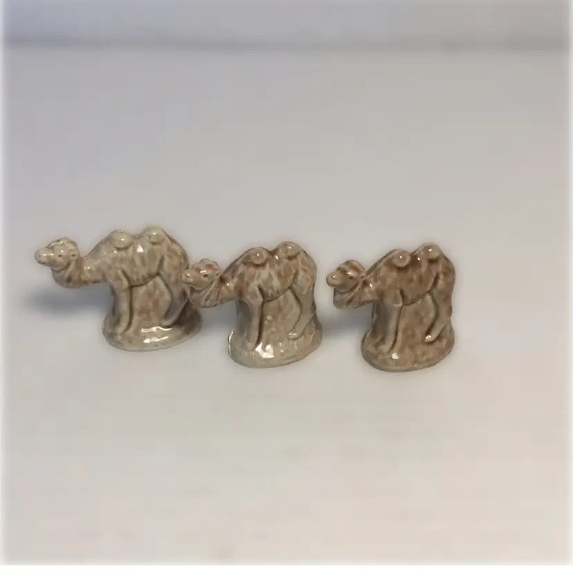 Her we have 3 vintage Wade Whimsy camels each measuring about 1.5” tall and 1.5” wide. They are in great condition with no chips or cracks.