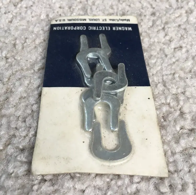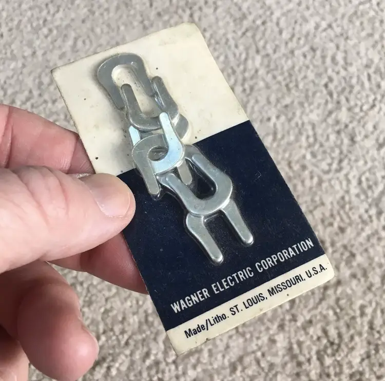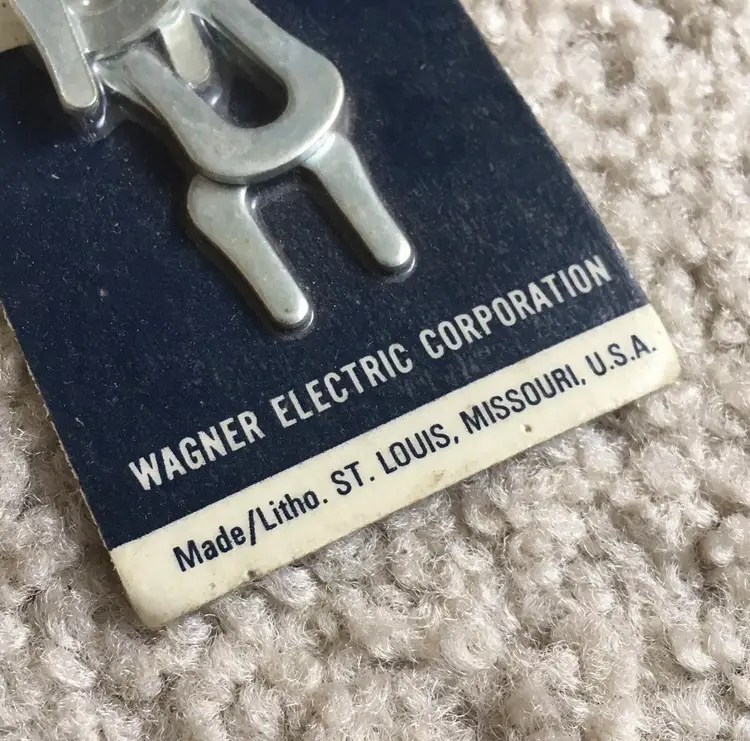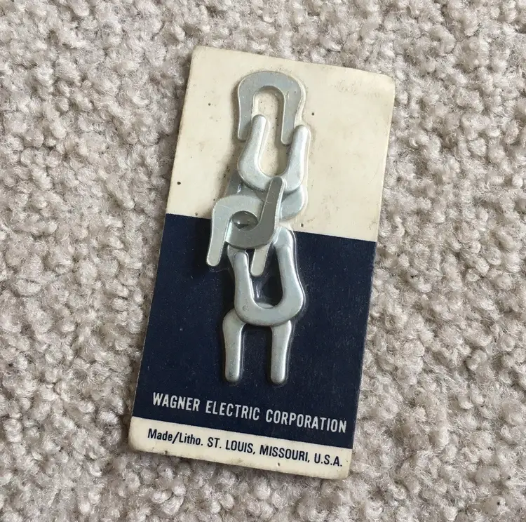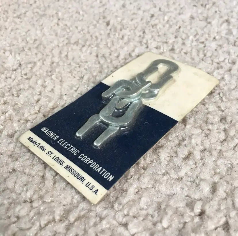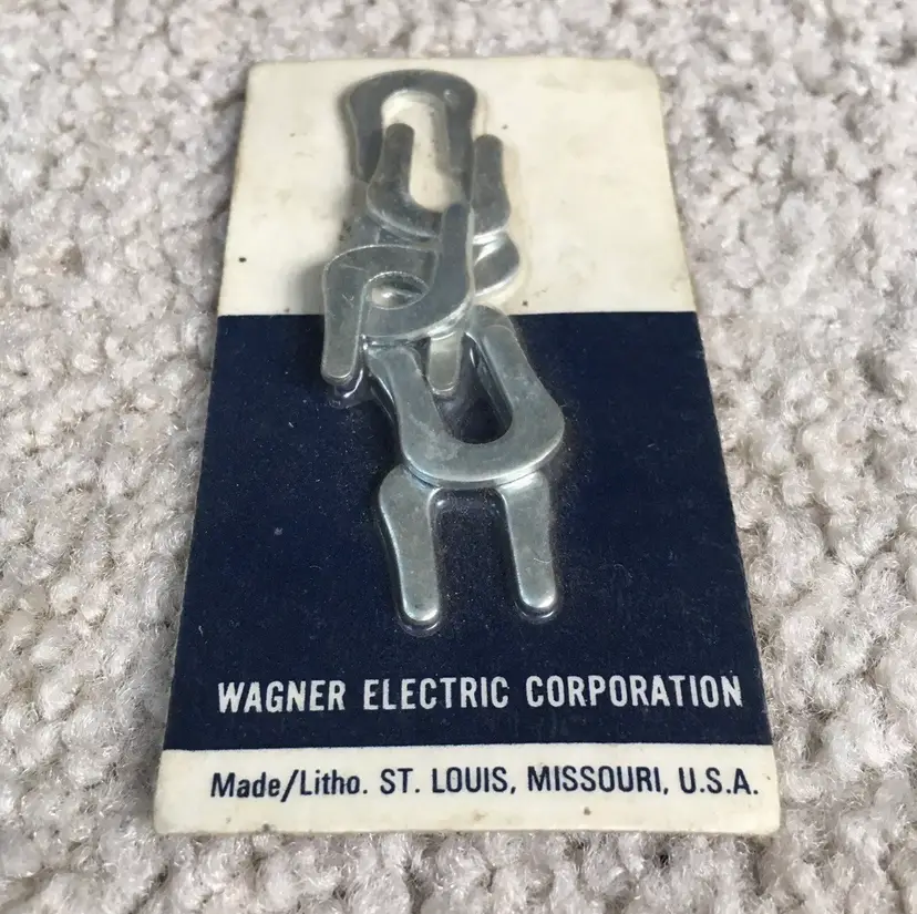Rare piece of automotive/industrial history for your collection!! Vintage Wagner Electric Corporation Unopened (NOS) Pack of 8 Brake Drum Shoe C Washers made in St. Louis, Missouri. No part number listed on the packaging. Wagner Electric Corporation was founded in 1891 and made electric motors, automotive parts and power transformers. The company was merged with Studebaker-Worthington in 1967, so this item pre-dates then. Have not found another of this rare item listed available anywhere!! Package measures about 3.75 x 2”. See pics for more details.