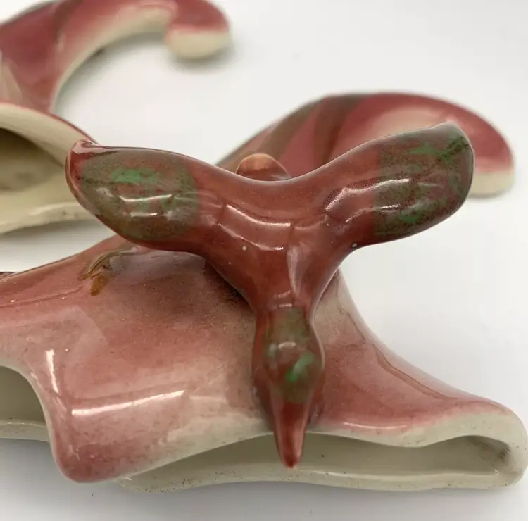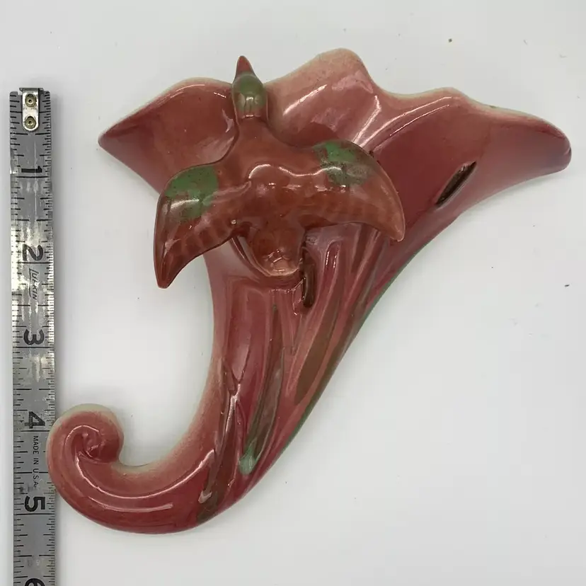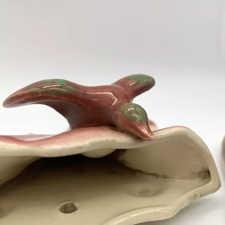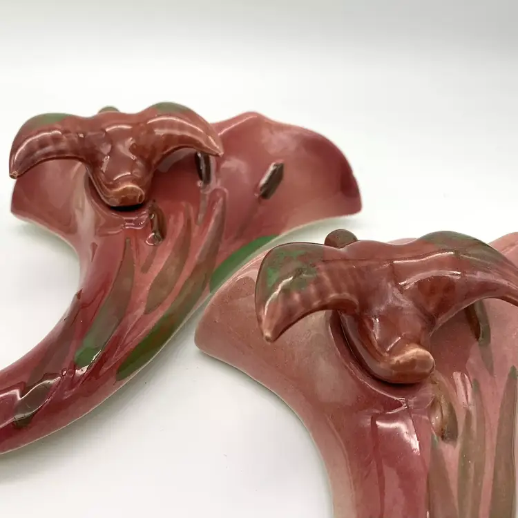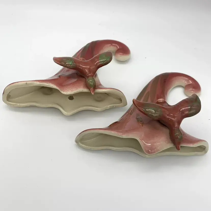 Pair of Vintage Wall Pockets Vases Goose Duck Cattails Pink Ceramic