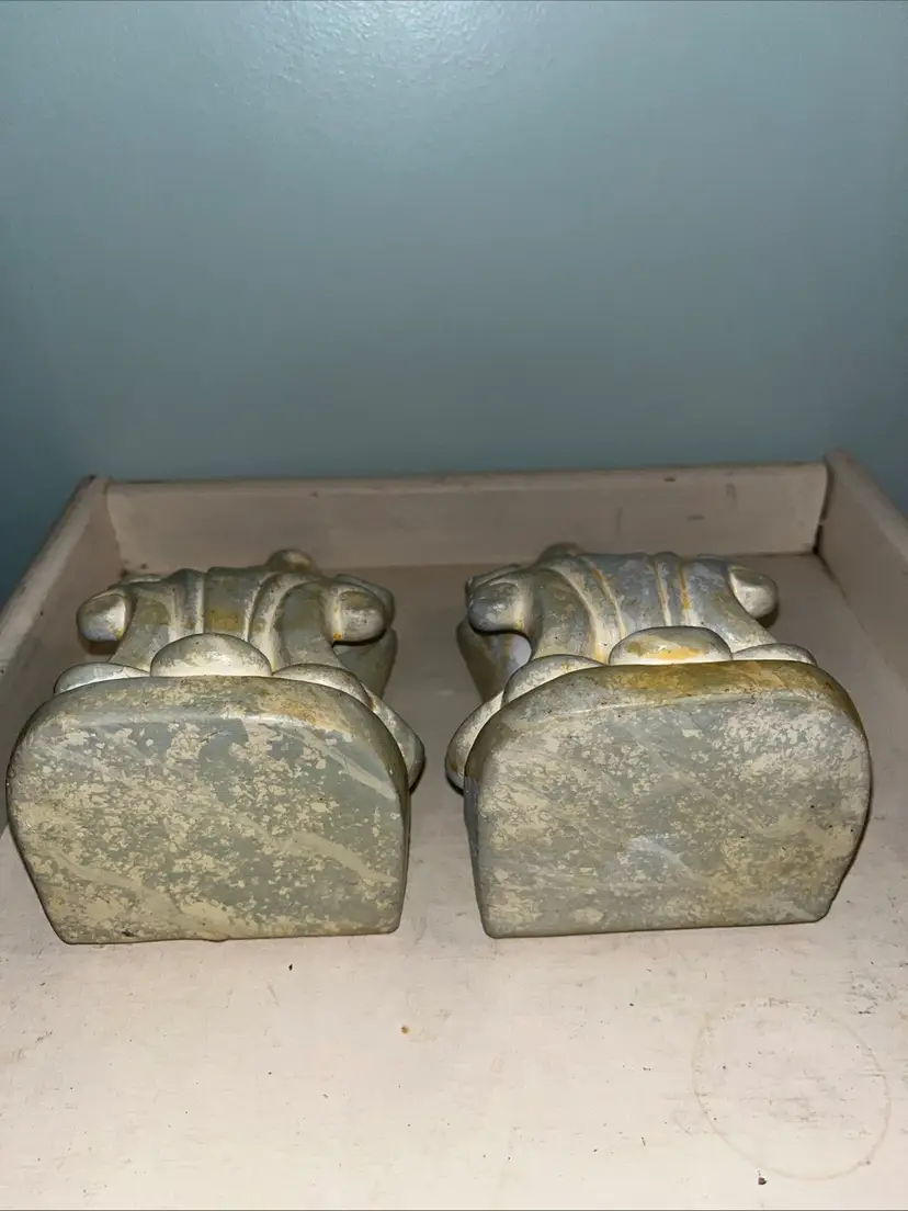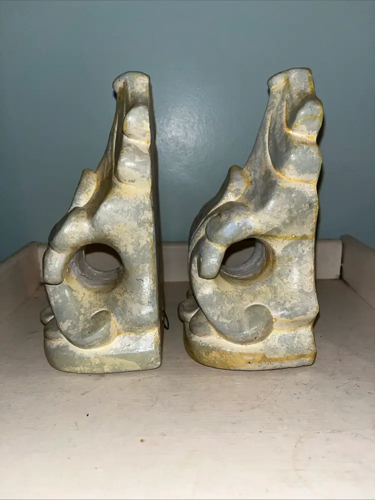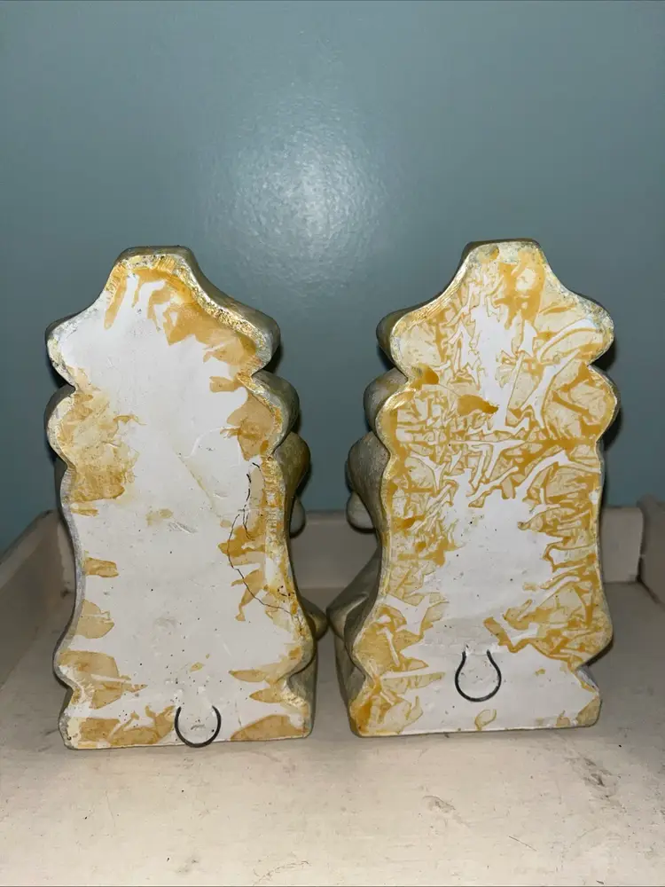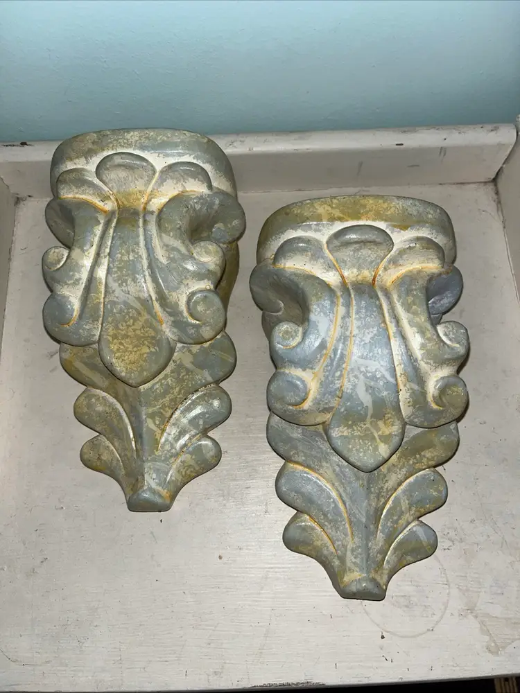 Set of 2 vintage, gray/beige plaster wall shelf ~ drapery sconce ~ corbels. Could also be used as bookends. Approximately 7" tall. The dimensions of the top are approximately 3" x 3.75". Pre-owned and in good vintage condition. Expect normal wear such as scuffs, scratches and/or discoloration. See photos and ask any questions prior to purchase. Thank you for your interest in this item. I try my best to accurately describe each item that I list for sale including any known defects. All items are sold AS IS. What you see in the photos is exactly what you get, nothing more, nothing less. If an item is not specifically listed as new then it is in pre-owned, used condition and wear should be expected. I do not accept returns so please take your time to review the item description, condition description and photos.