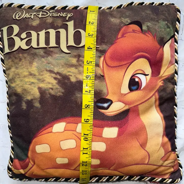 Vintage Walt Disney Bambi Movie 16 X 16 Throw Pillow Corded Edge. Some Minor Fraying On Cord Trim But Not Untwined. No Rips Holes Or Repairs. From Approx 2004-2007. Sold On Disneyshopping.com Back Then (and Noted On Hang Tag. Black Back. Spot Clean Only. Pillow Has Been Cycled Through Dryer On High Heat Prior To Sale. Smoke Free Home. #disney #waltdisney #bambi #bambimovie #throwpillow