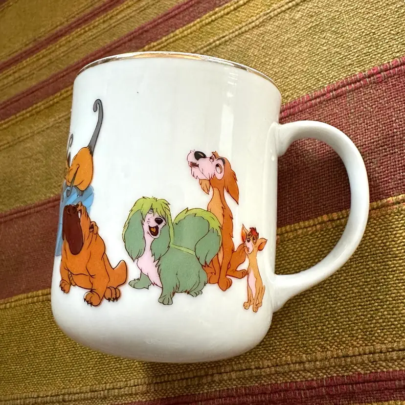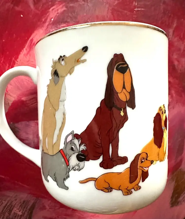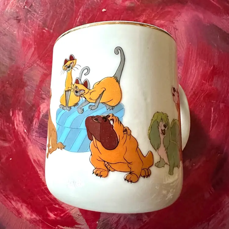 Good condition no issues gold rim in good condition 5 inches. The movie Lady and the Tramp is fun🧡