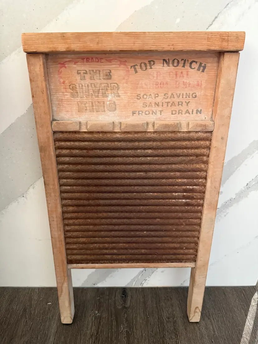 It is 24” x 13”. Good vintage condition! Wood & metal. Will reimburse shipping overages.