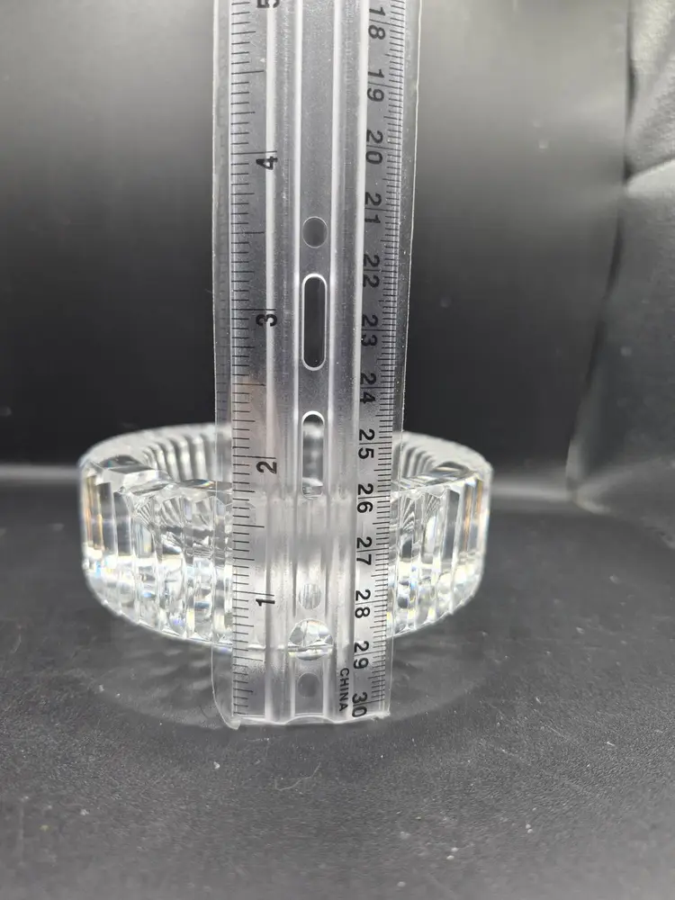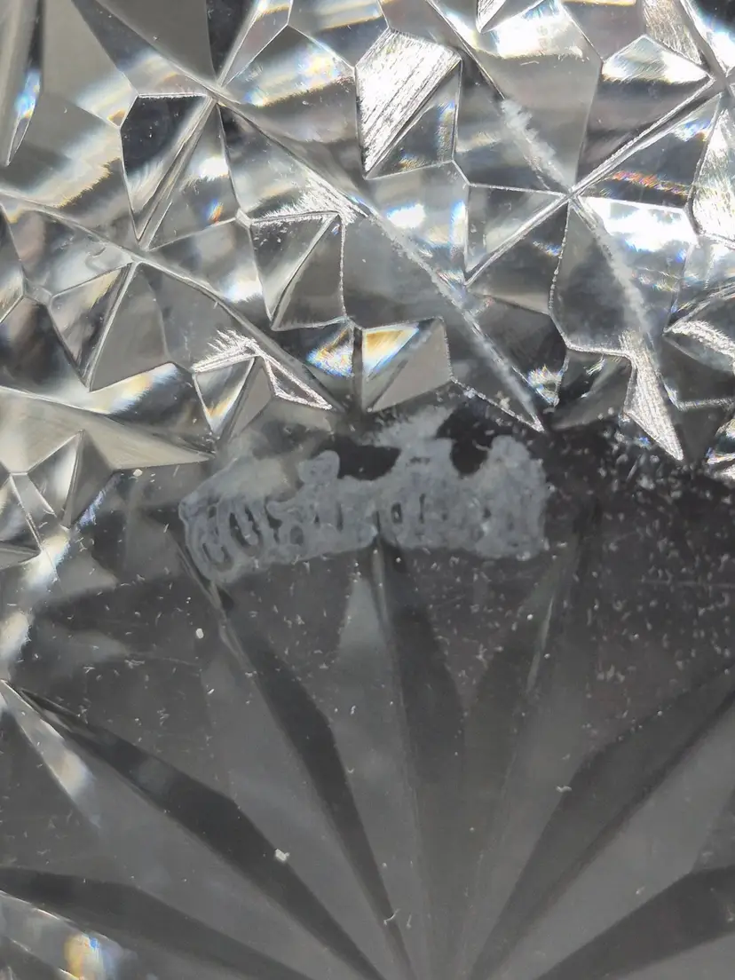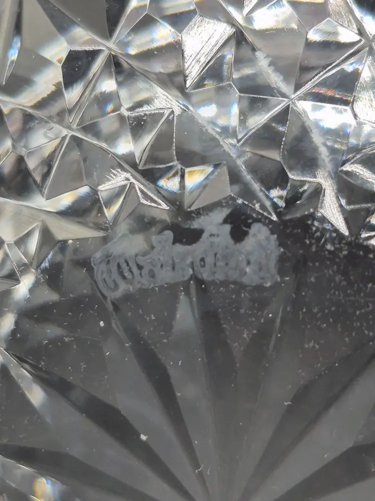 • Made of fine crystal-cut glass • Features intricate starburst pattern • Measures 3.75 inches in diameter • Sturdy, weighted base for stability • Timeless vintage design