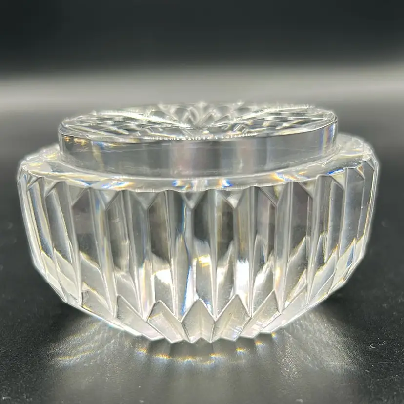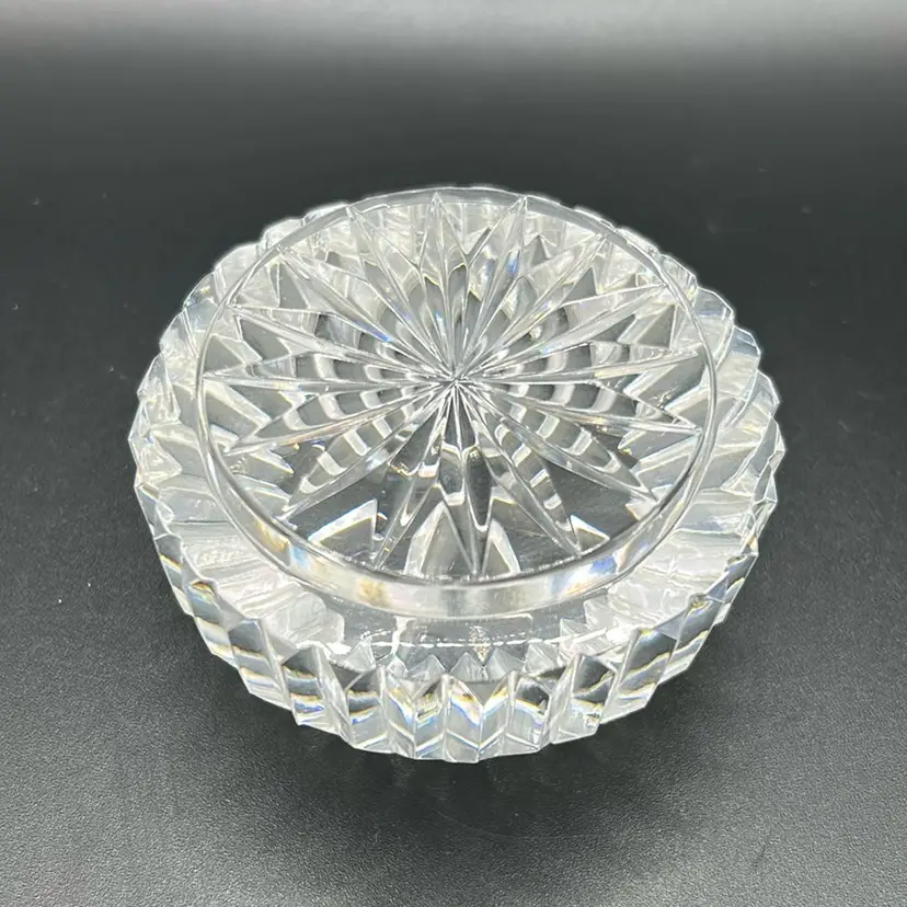 This item is a vintage Waterford crystal paperweight. It stands almost 2 inches tall and is 3 inches across. It is an excellent condition. My research shows it is Waterford. However, I cannot find a Waterford Mark on it.