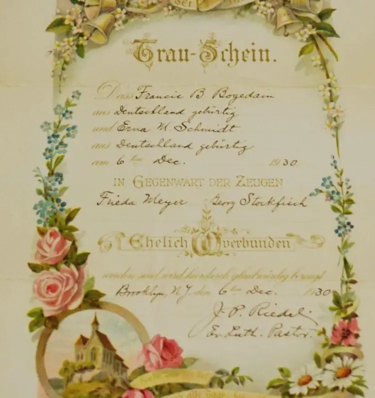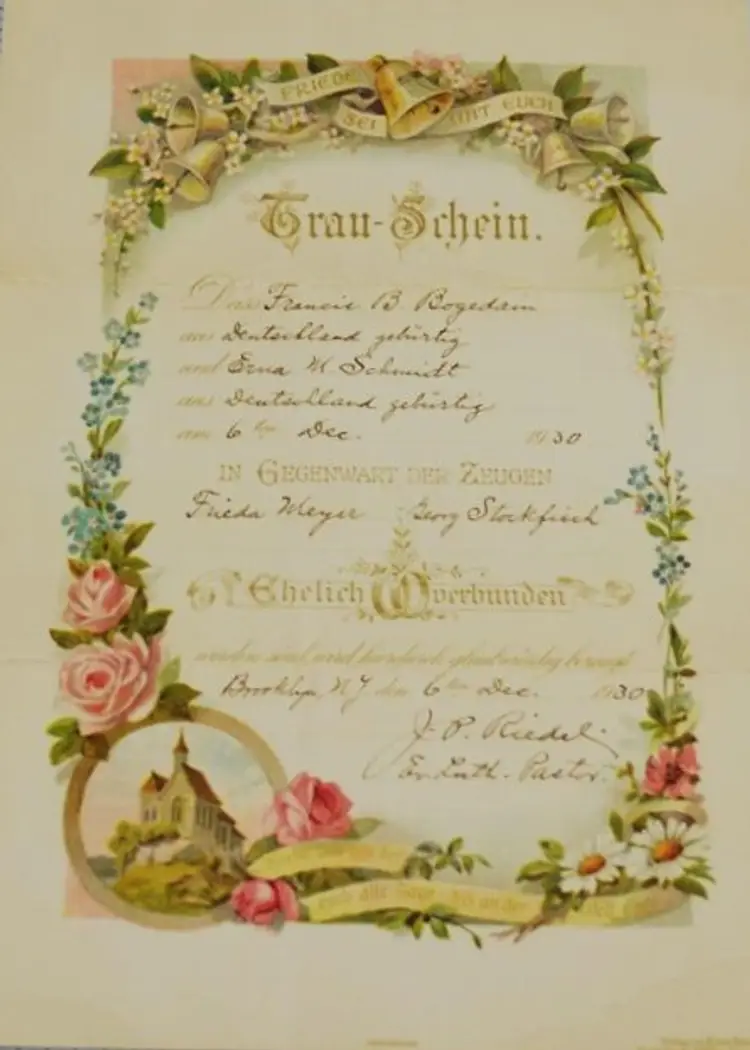 Wedding Certificate from 1930 in German. Display next to vintage wedding photo or use in scrapbooking, junk journalism.