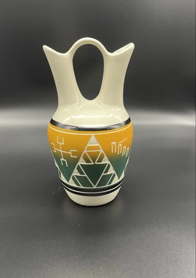 VINTAGE WEDDING VASE PUEBLO NATIVE AMERICAN INDIAN ARIZONA SIGNED 9.5"