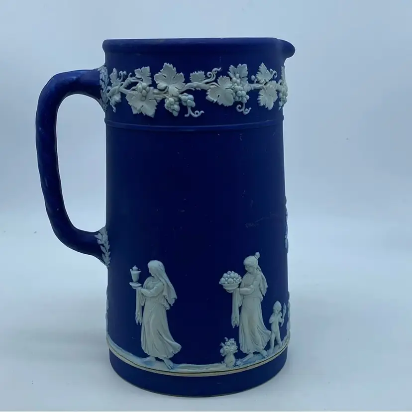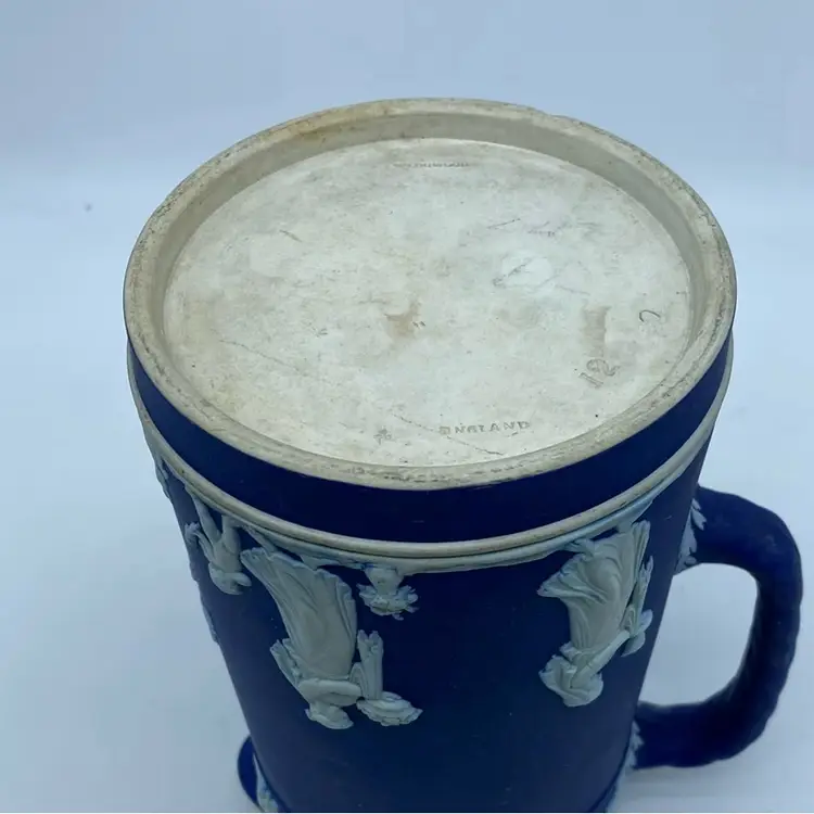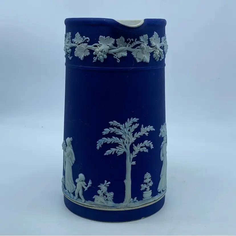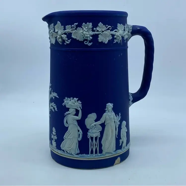 This piece has chip on base - see photos Displays well Wedgwood Jasperware is a type of unglazed stoneware developed by Josiah Wedgwood in the 1770s. It is renowned for its matte finish and the application of raised relief decorations, often in contrasting colors, most famously white on a colored ground. The iconic blue color, known as 'Wedgwood blue' or cobalt blue, is particularly sought after by collectors.