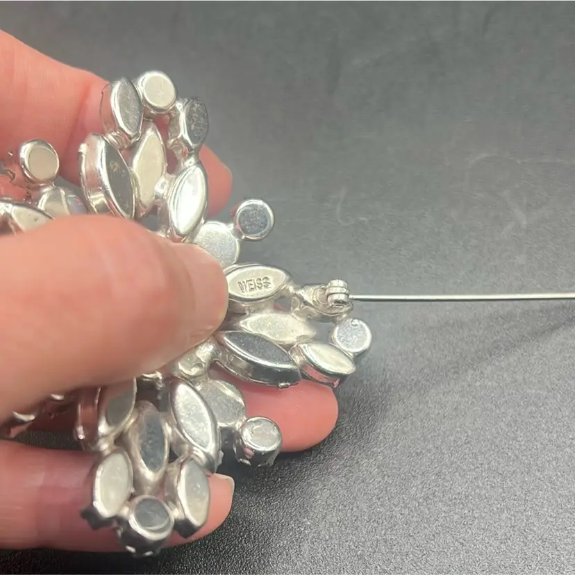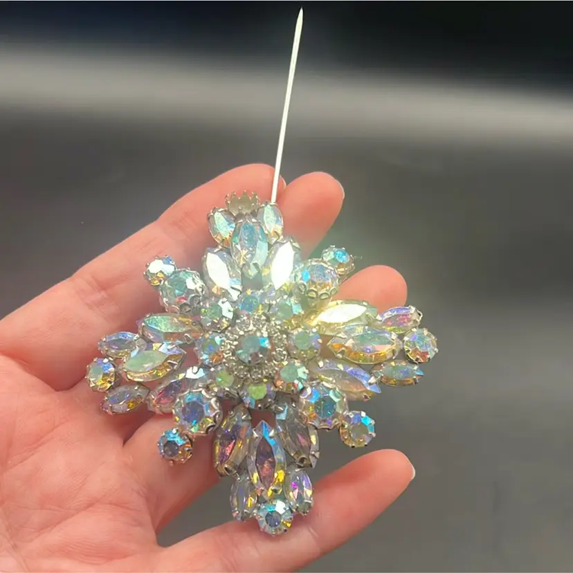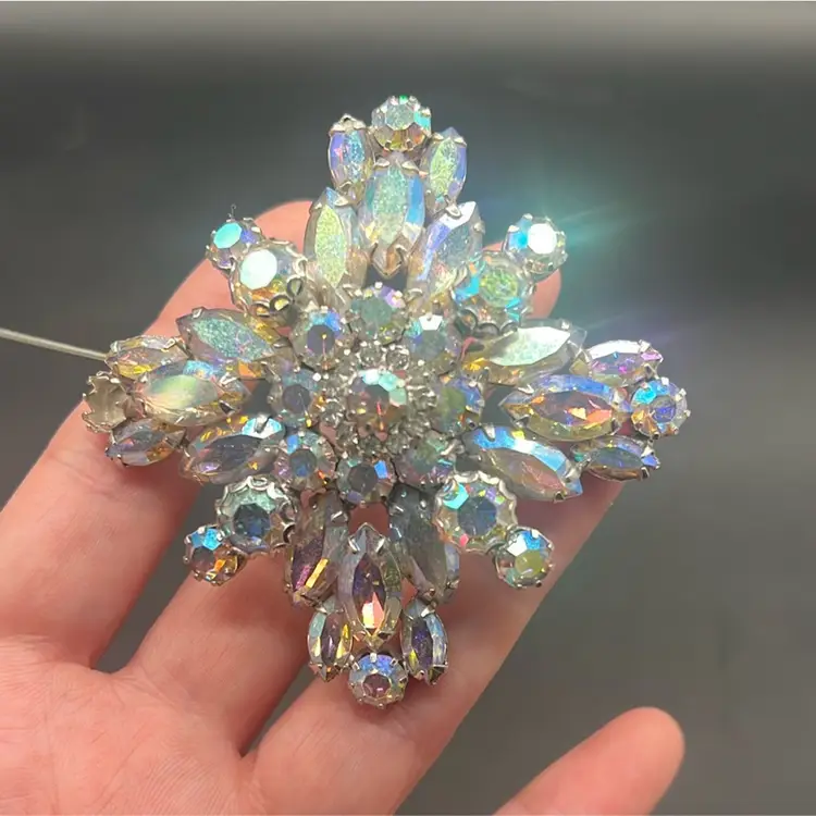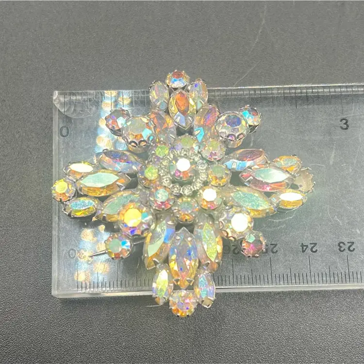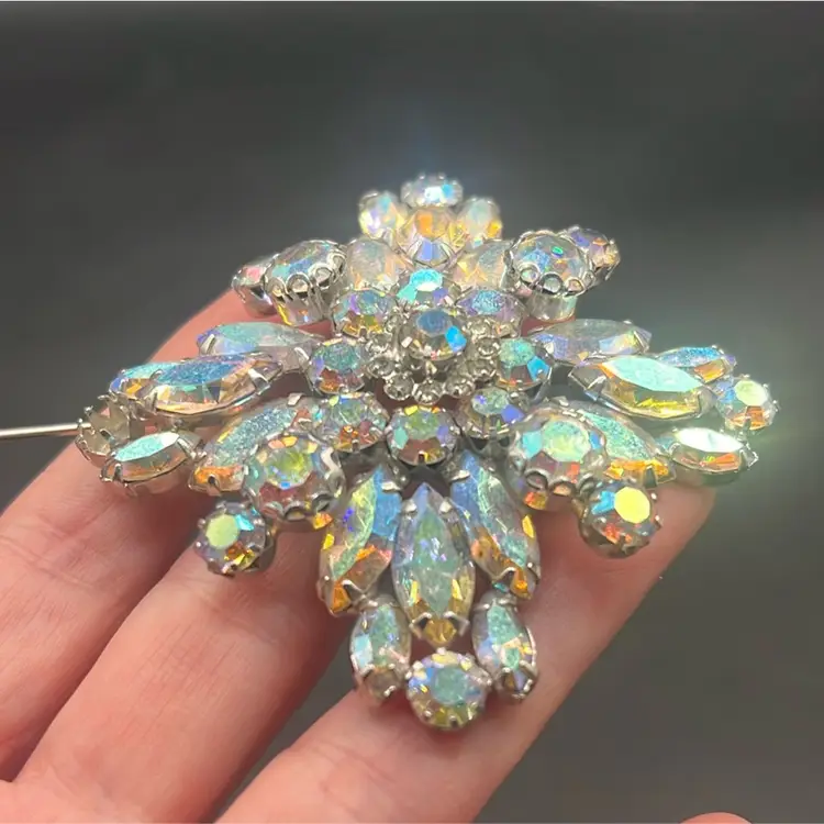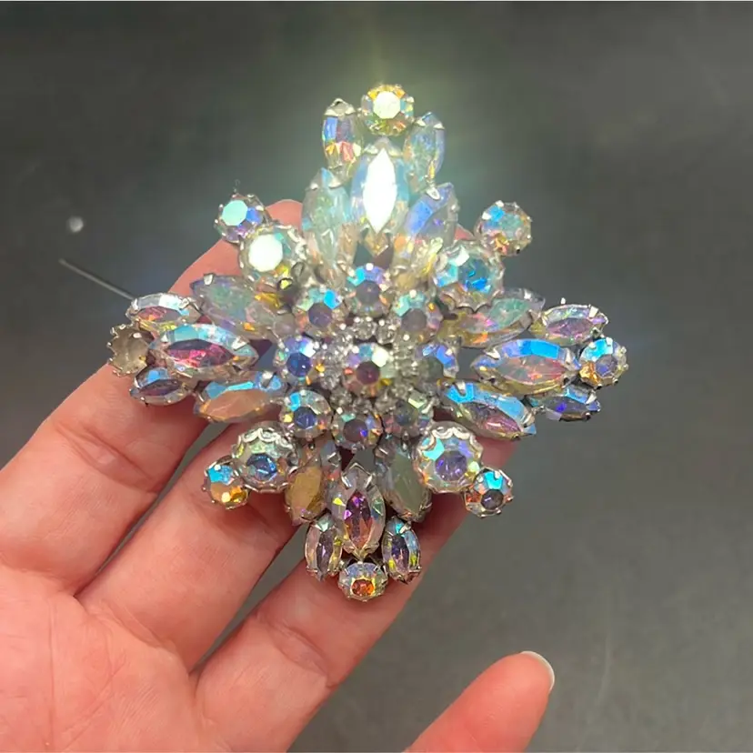 Vintage WEISS Aurora Borealis Rhinestone Starburst Brooch Silver Tone Signed •••••Missing one stone•••••