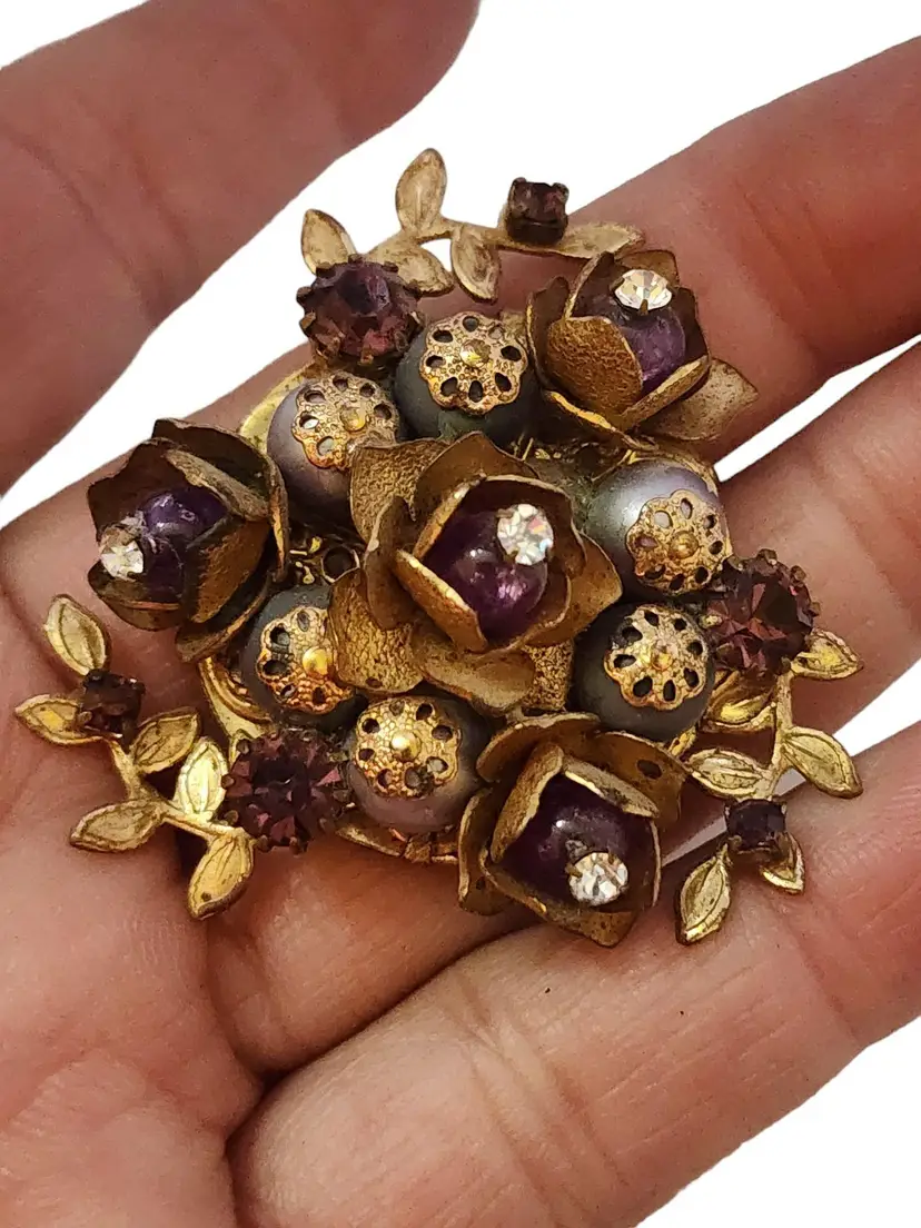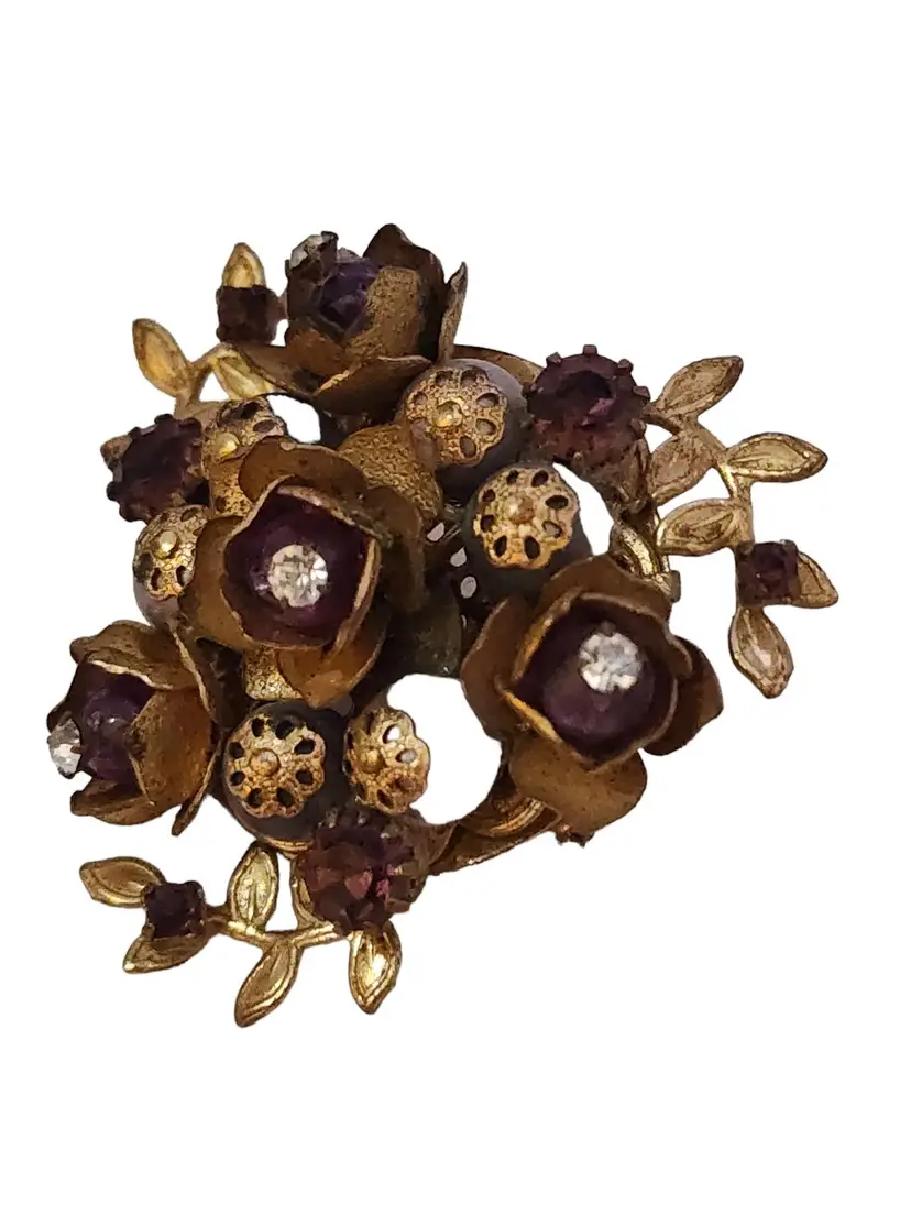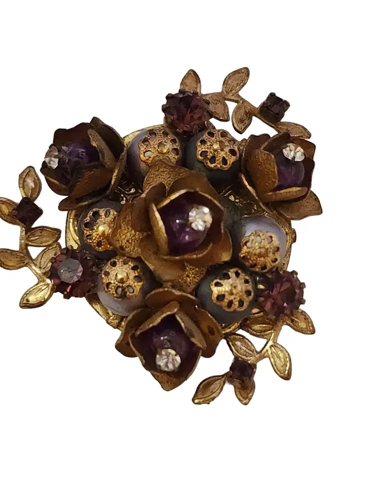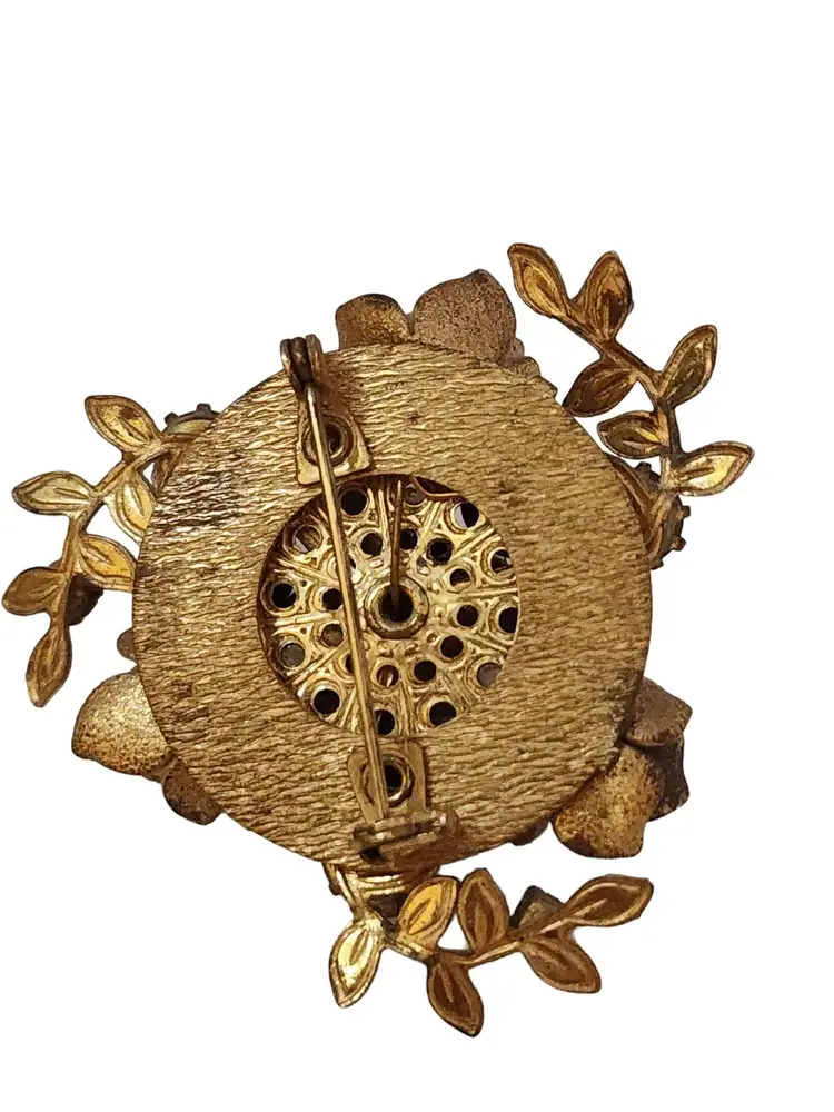 Size: 2" Color: Gold Condition: Good vintage; some wear to the brooch Signed: None