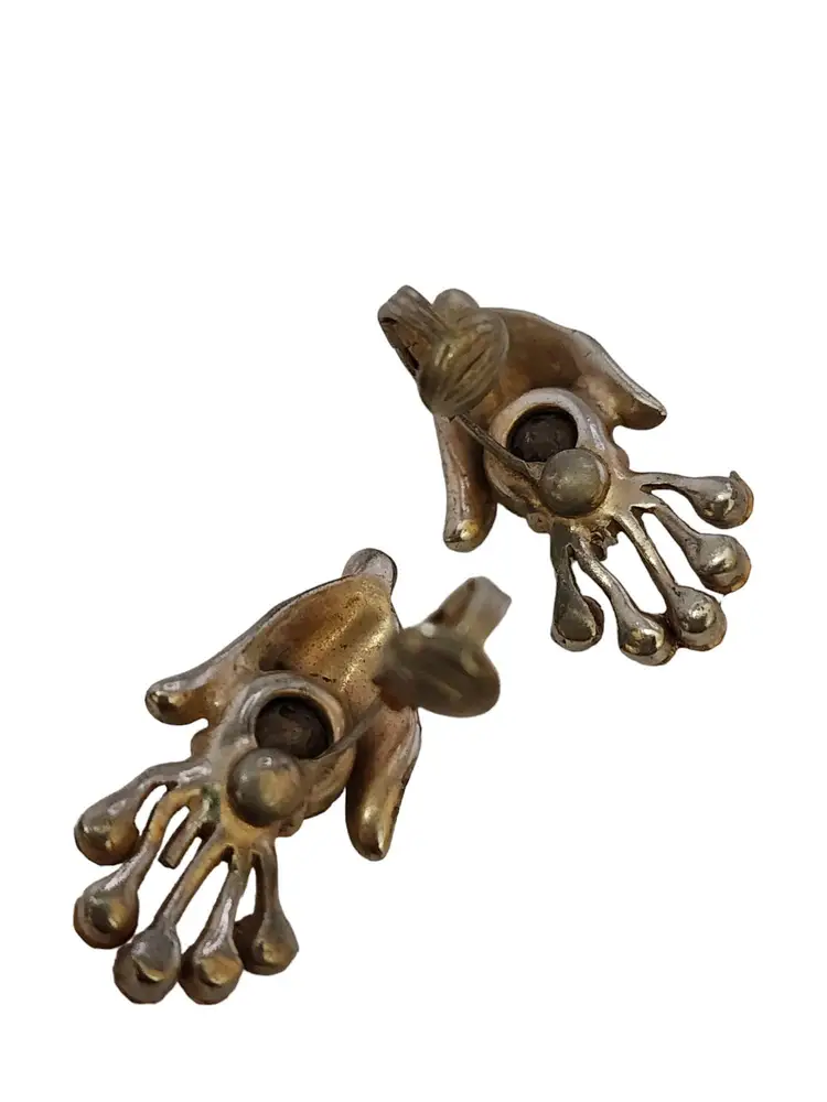 Vintage Well Made Early Glass 2 Tone Rhodium Plate Clip Earrings (A3563)