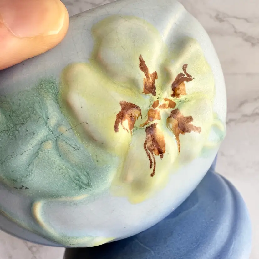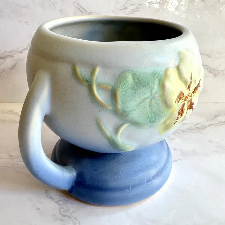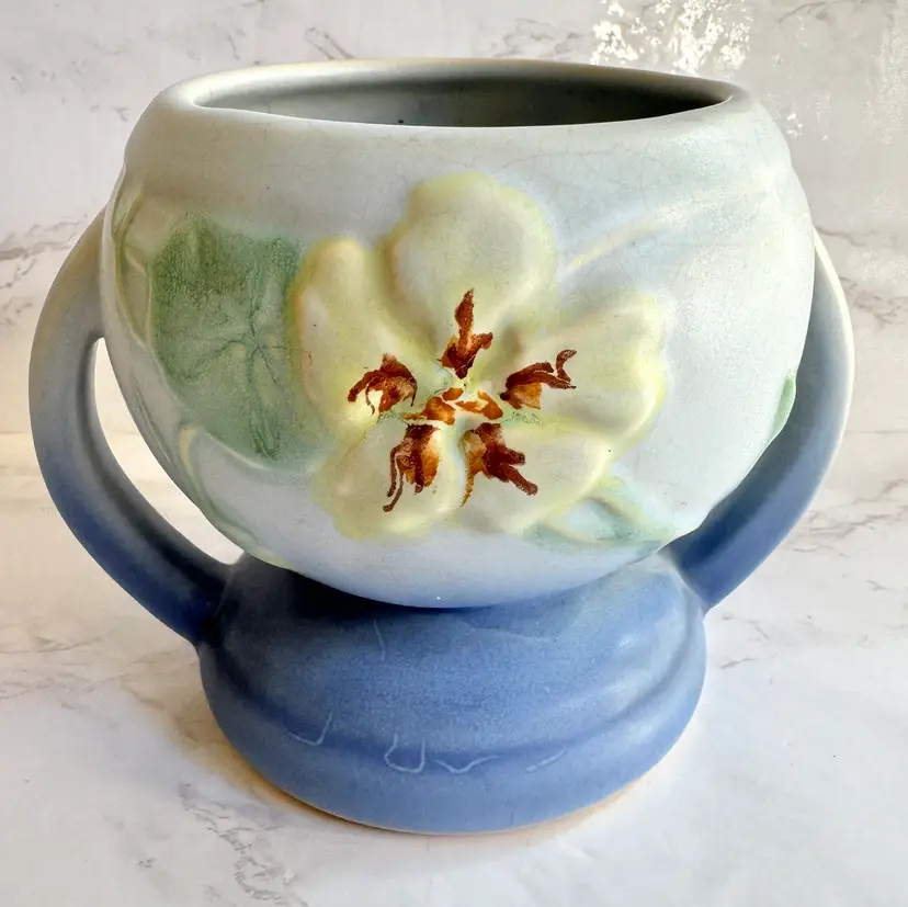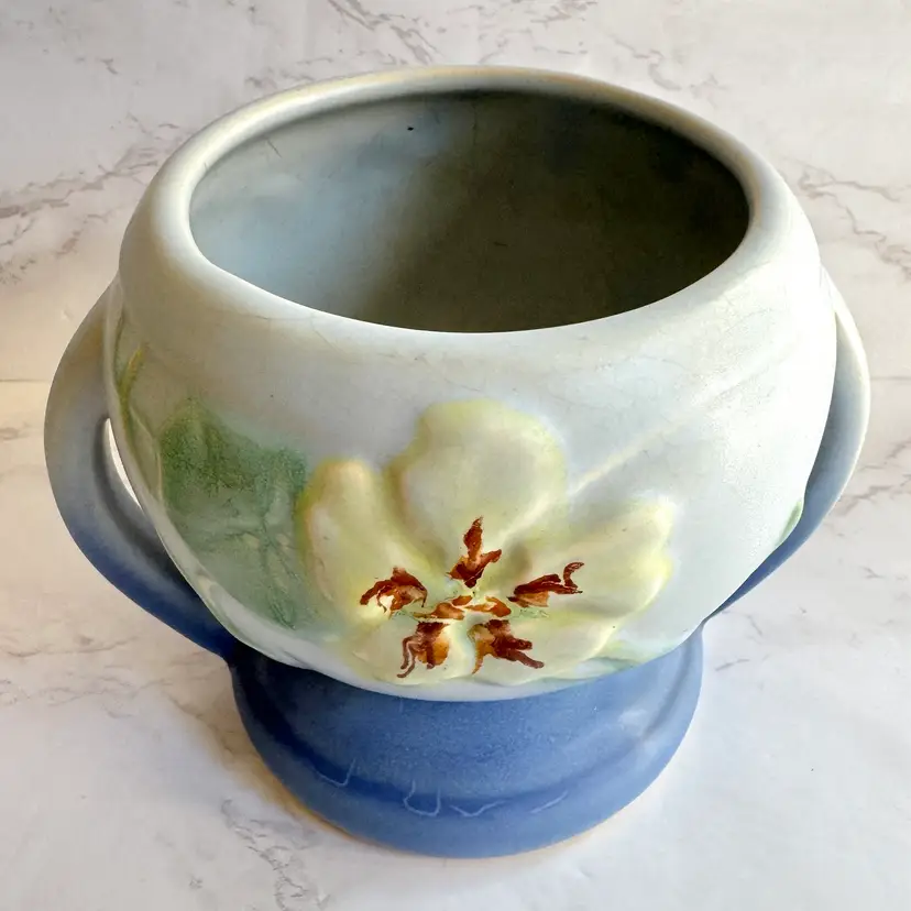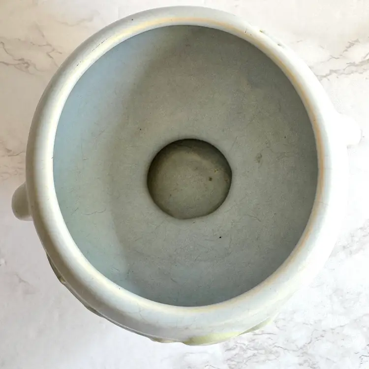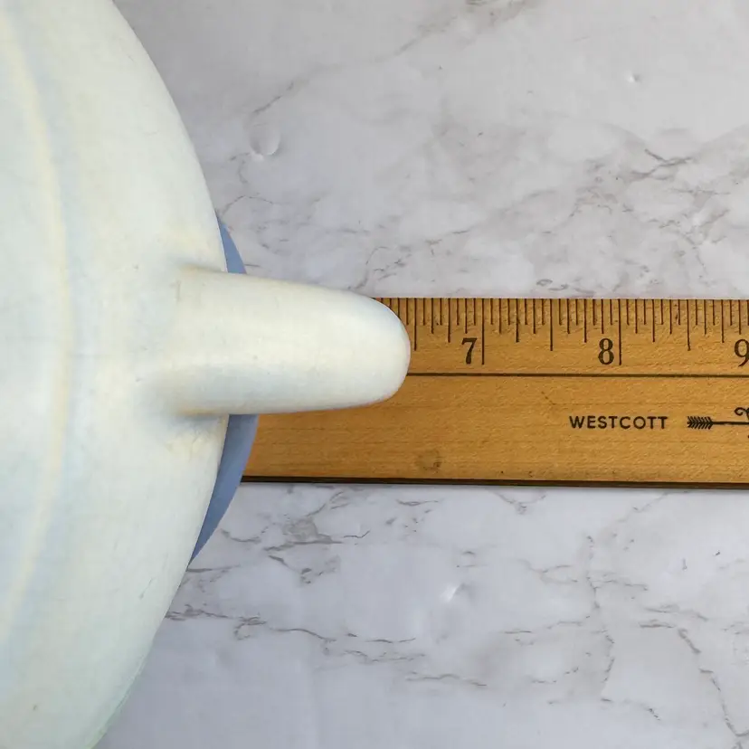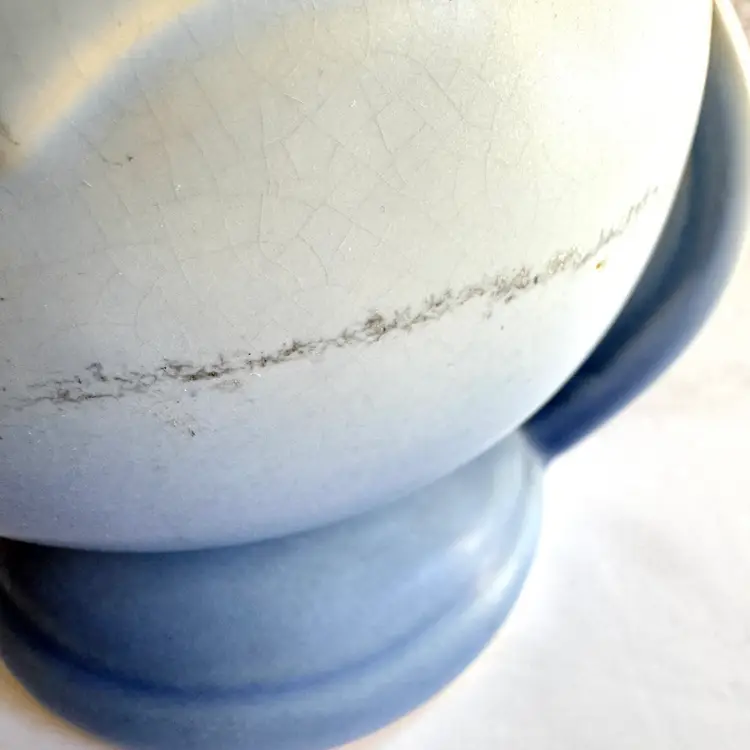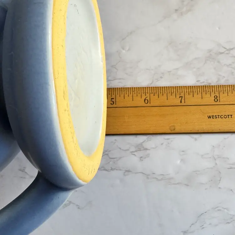 Has some areas of scuffing like it has rubbed up against something. Might be able to scrub it off with something, I haven’t tried. Mostly limited to the back side. No chips or cracks. 6-1/2”w at handles, 4-3/4”h