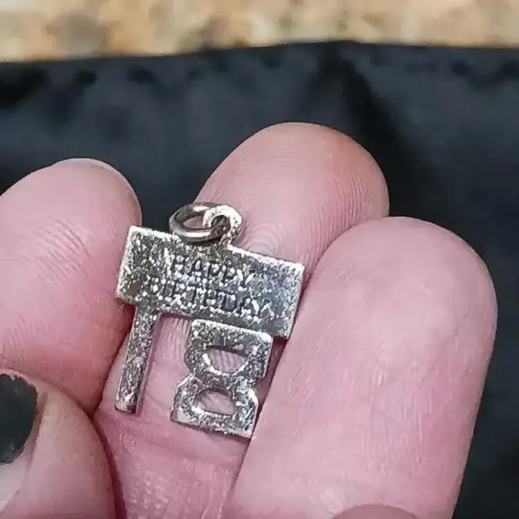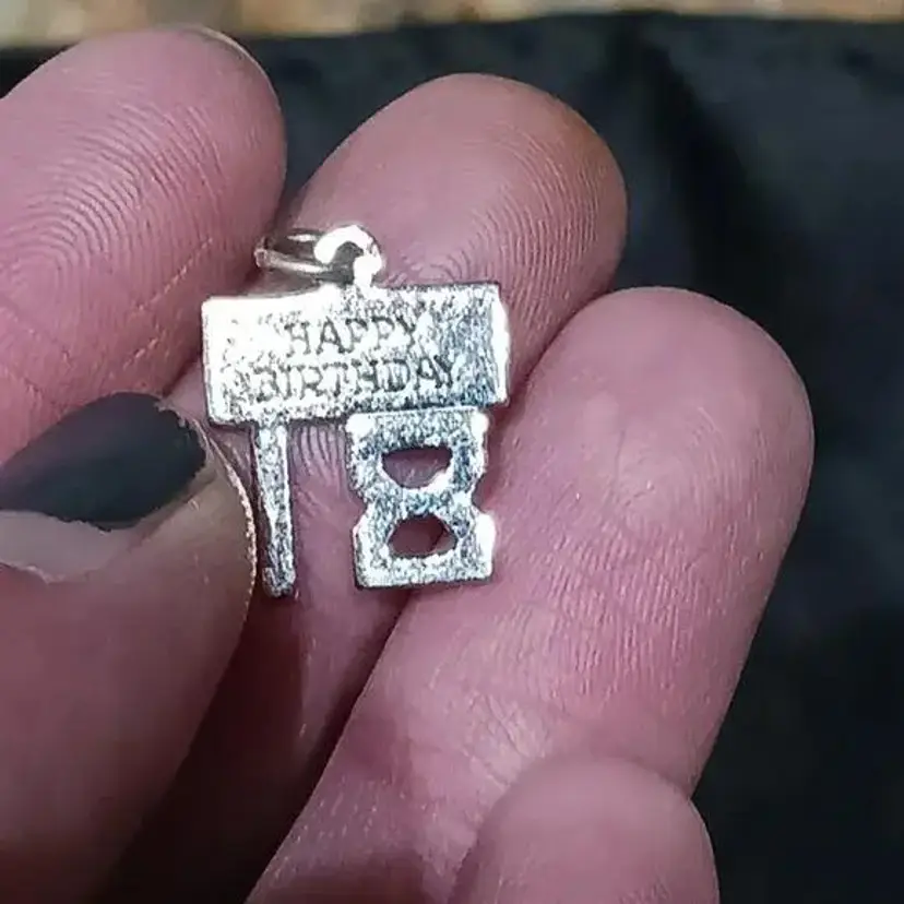Vintage Wells "Happy 18th Birthday" Flat Sterling Silver Charm Pendant ~ 1.5g Pre-owned, Great condition.
