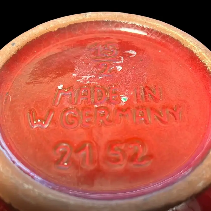 Vintage West Germany Redware Pottery Bowl /planter Deep Red, Marked, 5” Deep No Chips Or Cracks