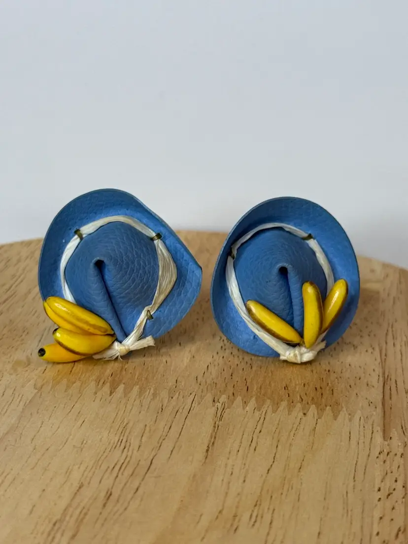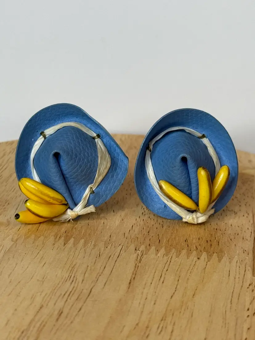 These vintage earrings from Western Germany are a unique addition to any jewelry collection. The earrings feature a cute banana design and are perfect for those who love fruit-themed accessories. The earrings are handmade and signed, adding to their authenticity.