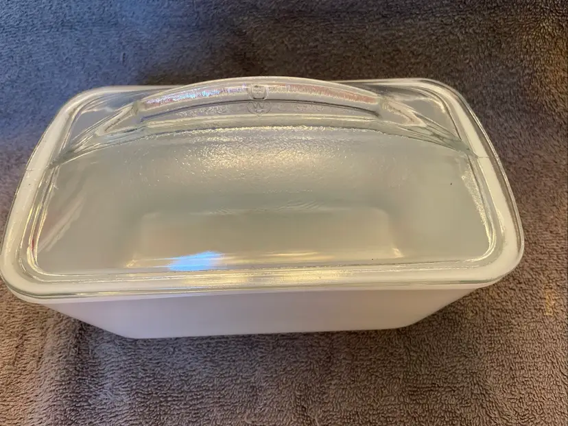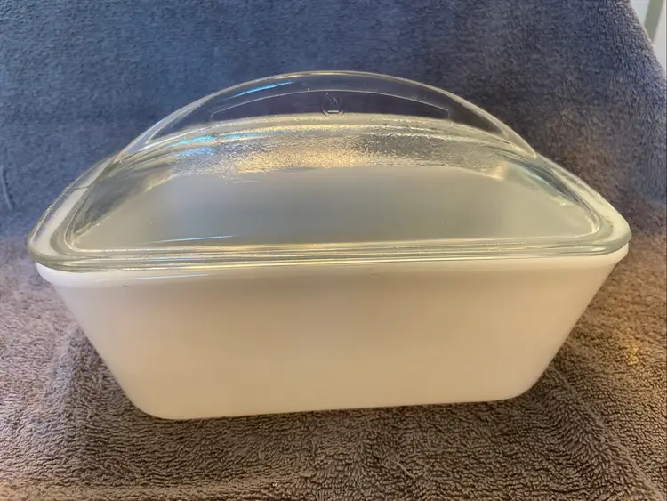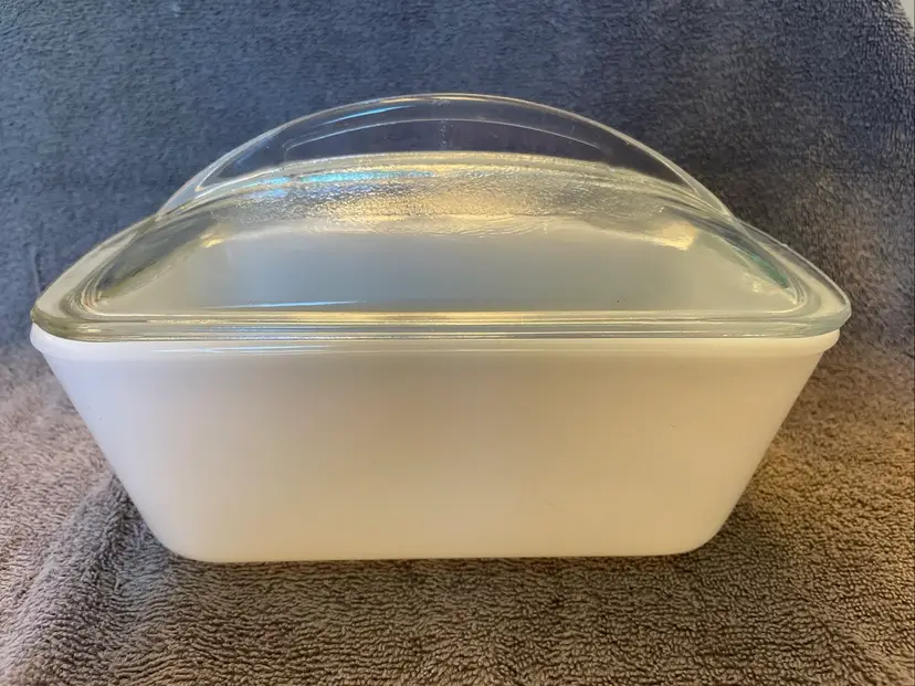 Vintage Westinghouse Milk Glass Loaf Pan Baking Dish with Clear Lid