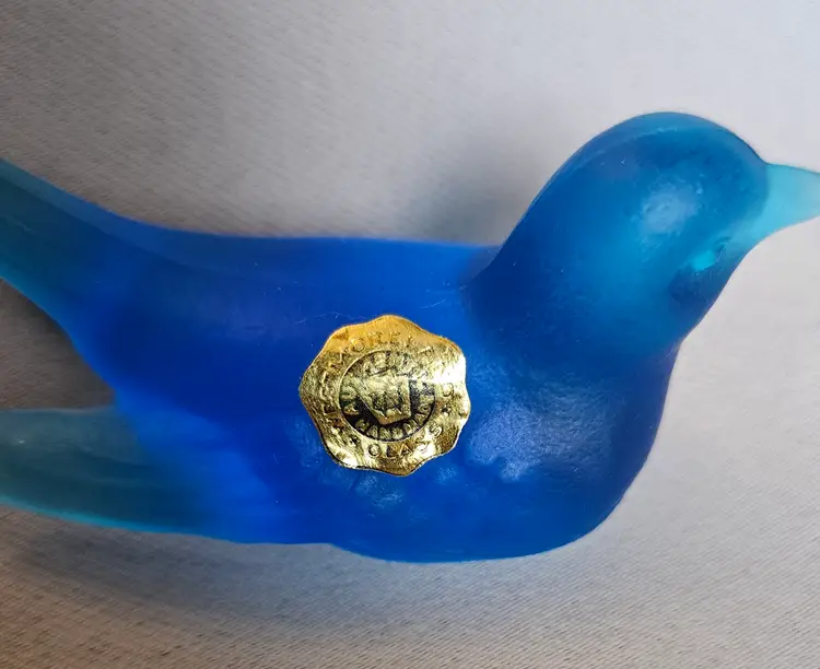 The gold foil stickers is a bit faded; however, it remains intact on once side of the figurine. The Westmoreland mark is seen on the bottom, backside of the bird. This items is in Good, Pre-owned condition, showing minimal wear from age and previous use. There is a minor flea bite sized knick in one of the wing tips (Shown in photos). There are no breaks, no cracks. See all photos of description*