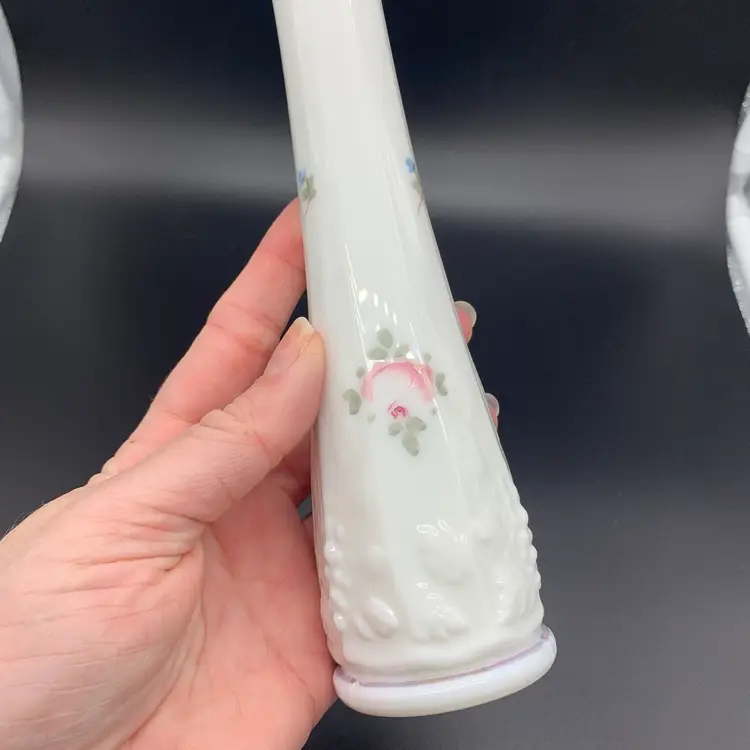 This beautiful vase is hand painted. It appears it was used as a functional vase as there is some residue in the inside of the vase. There are no chips or cracks.