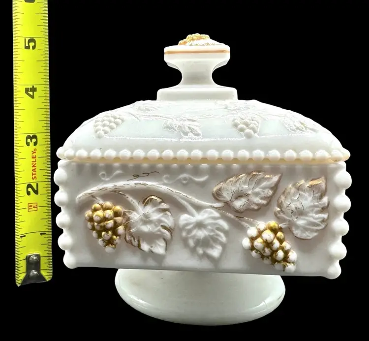 Condition: No chips or cracks. Wear to gold paint. Dimensions: 5” tall & 4.5” wide