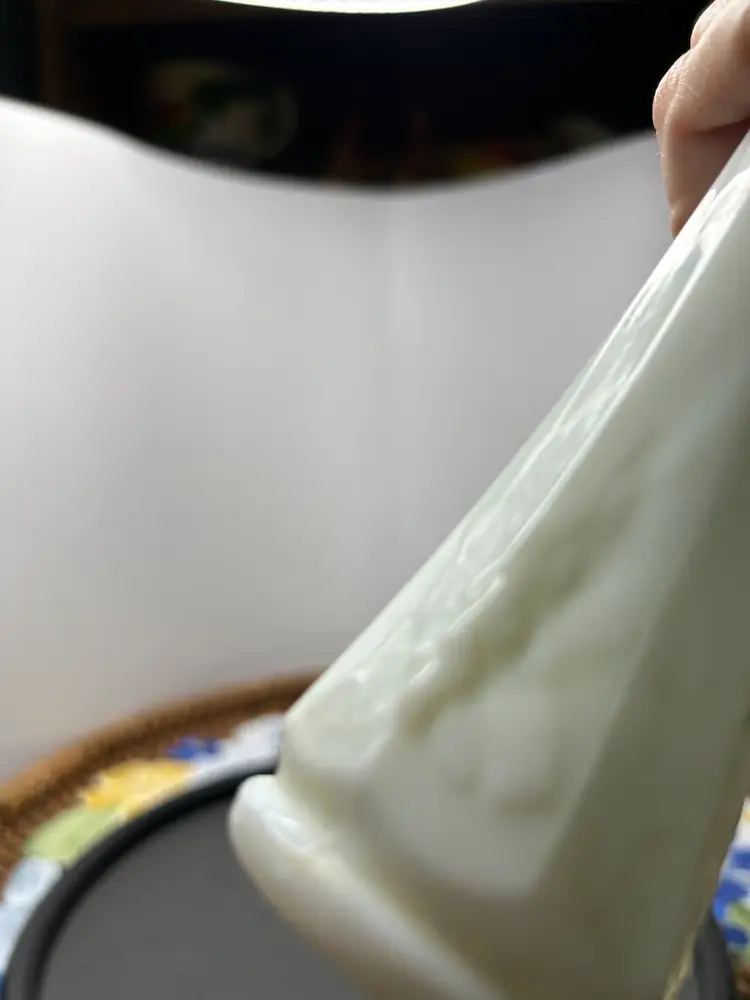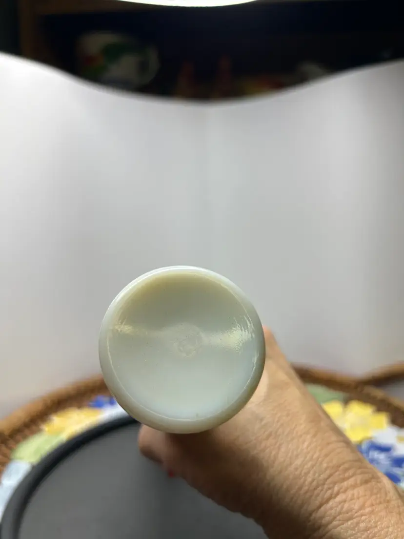ORIGINAL PRICE:$10 11” tall, 1” diameter at opening, 1.75” diameter bottom. Grape and leaf pattern around bottom. Westmoreland logo on bottom. Excellent condition. No chips or cracks.