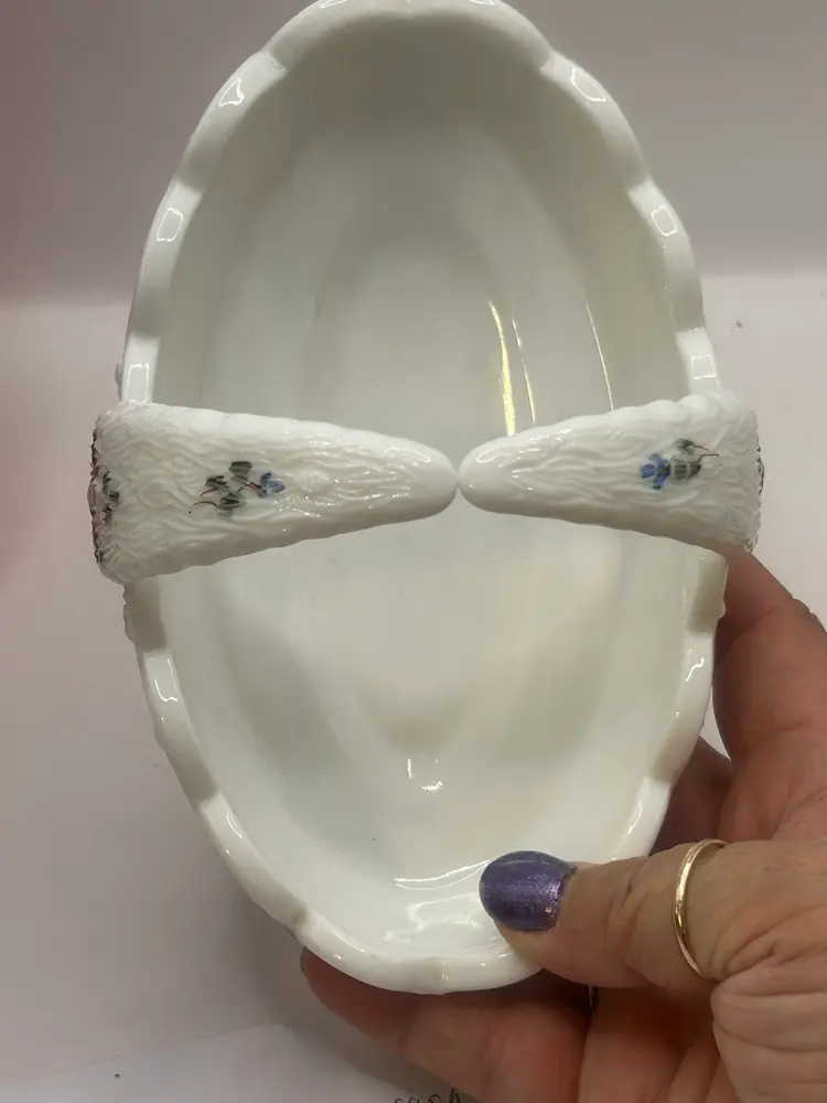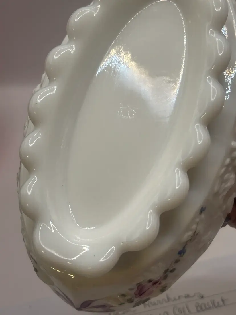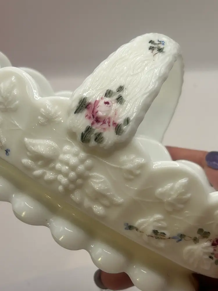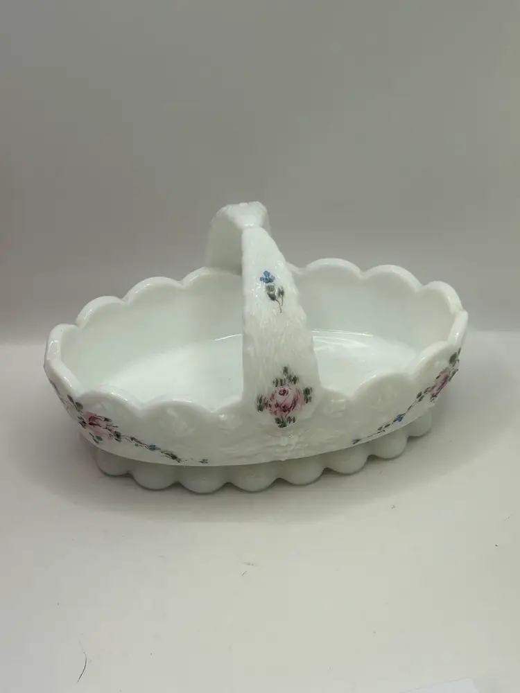 Vintage Westmoreland split handle handpainted floral basket paint loss on flowers 6 1/2 x 4