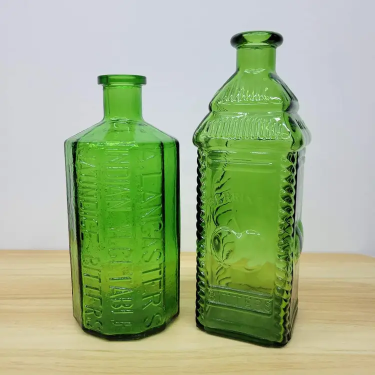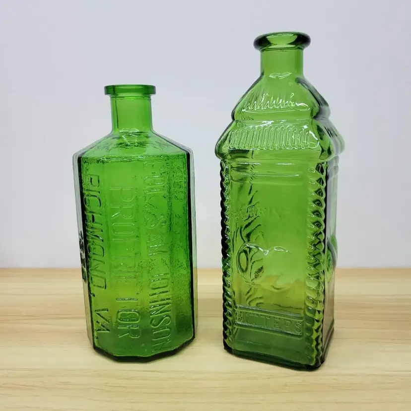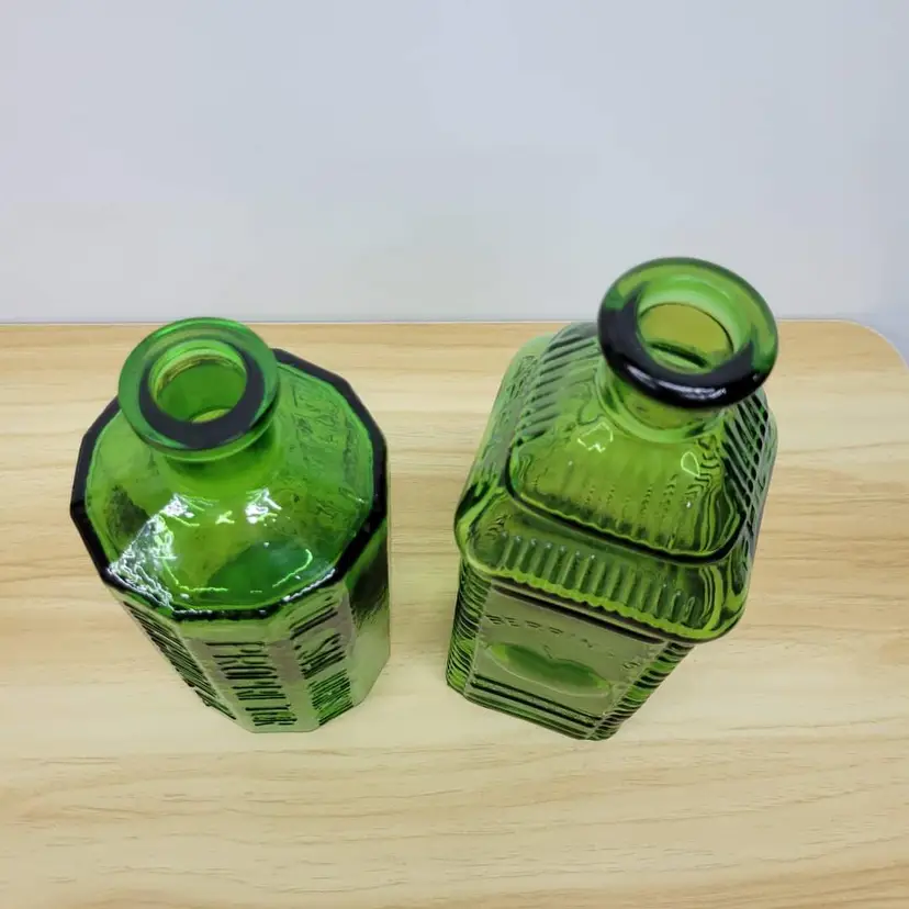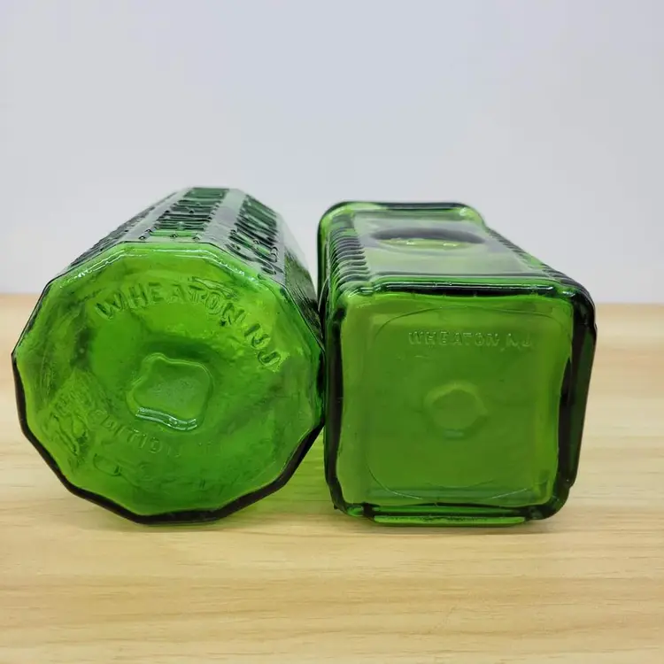 Incredibly cool set. These make a perfect pair for a Halloween potions poison bottle display. Stunning green color!