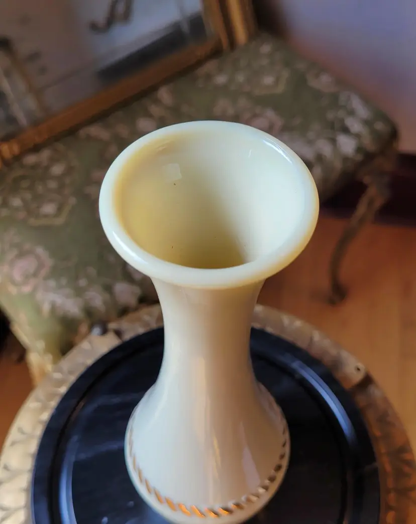 Really pretty creamy yellow custard glass vase by Wheaton, circa 1950s. It's in good condition, please see pictures for details and measurements.