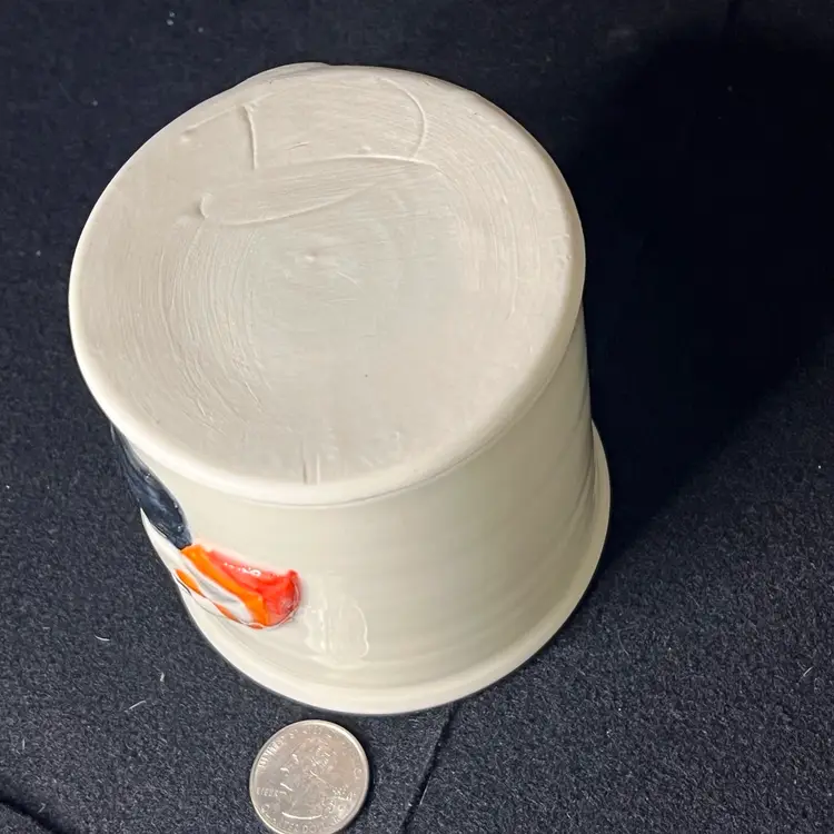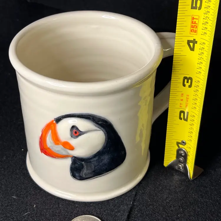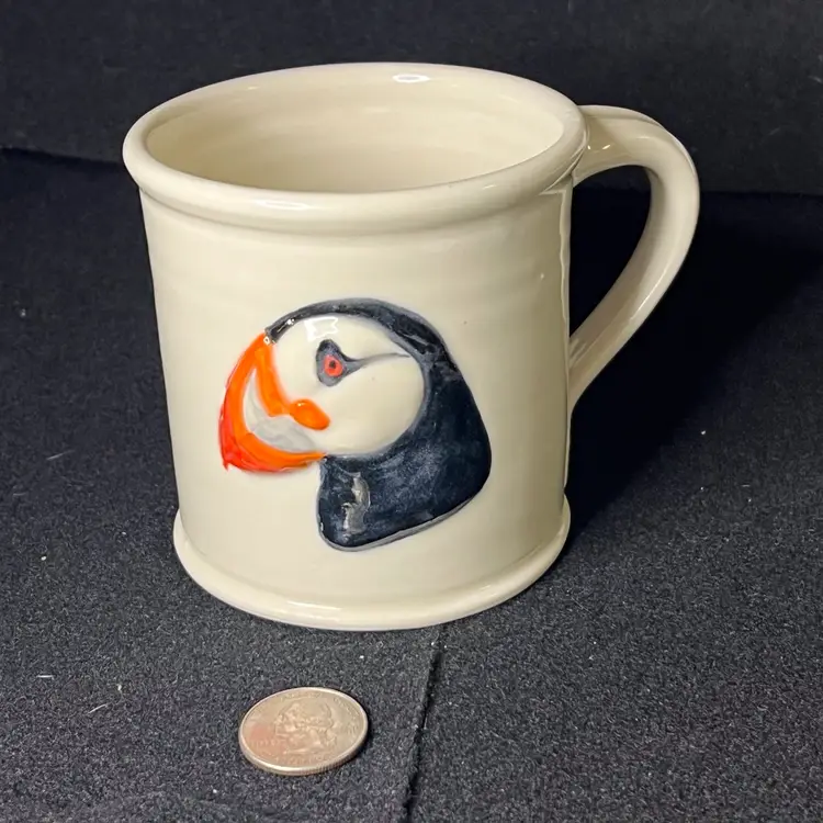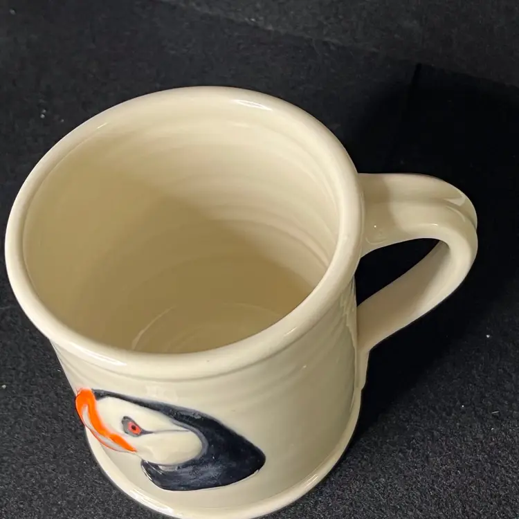 Wonderful hand carved, lifelike painted Puffin, glazed mug.