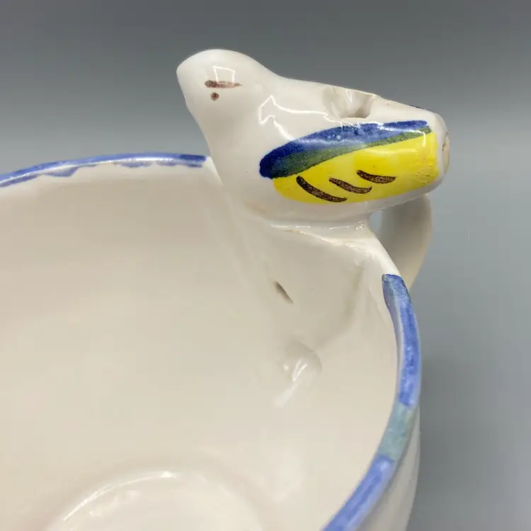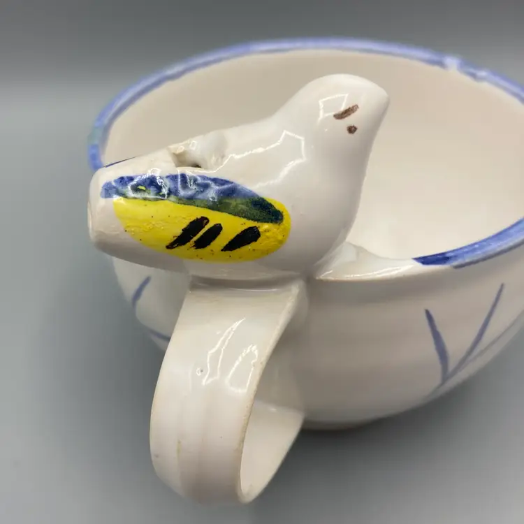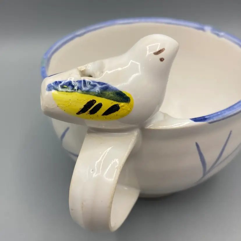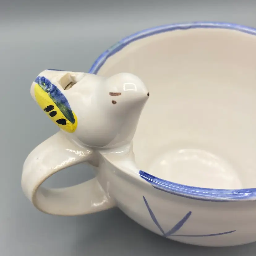 The whistling teacup is a wonderful musical toy and a beautiful ceramic drinking cup. Fill the cup with any liquid above the level of the inner hole, and then blow into the little bird. Your teacup will whistle like a nightingale!