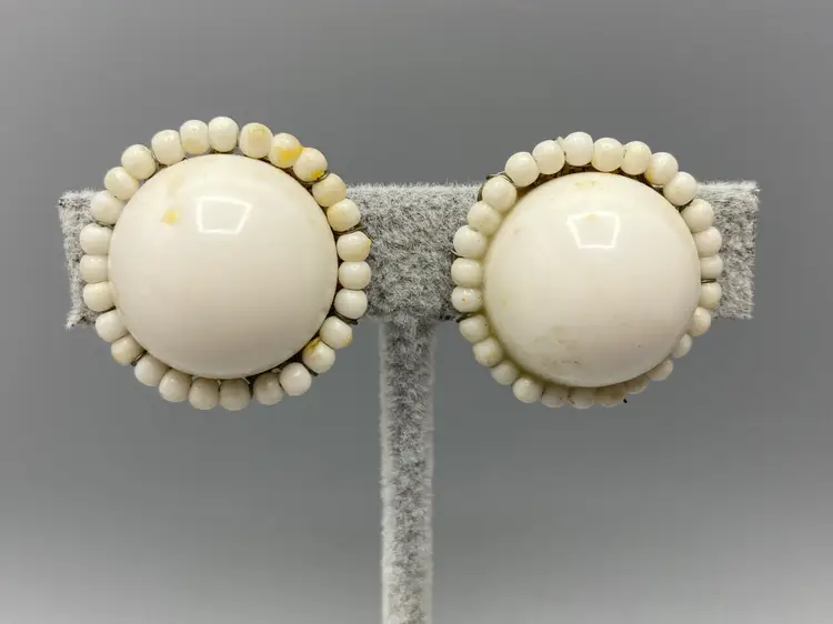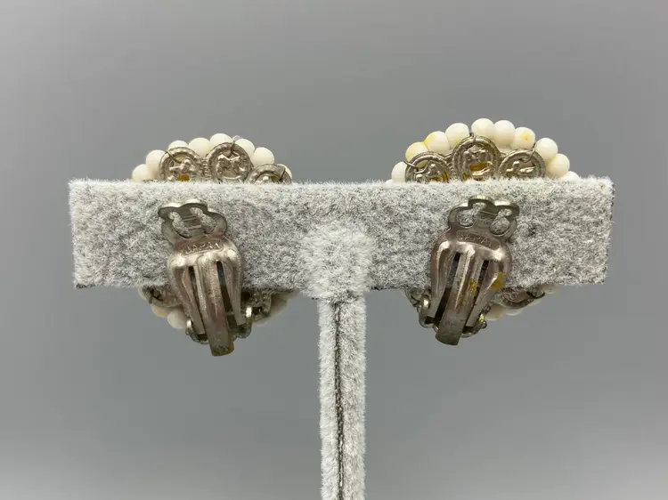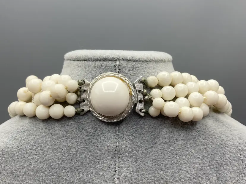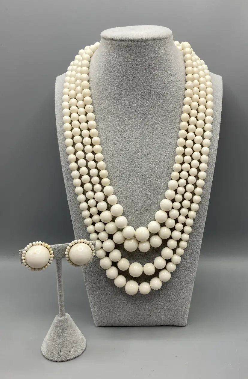This set in good overall condition. There is some discoloration on the earrings, please see pictures for details. The necklace measures approximately 10" to 12". The earrings measure approximately 1".