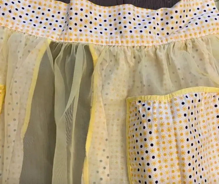 Vintage White and Yellow Sheer and Cotton Fabric Apron 19 inches long from waist to bottom. Weight is 60 grams