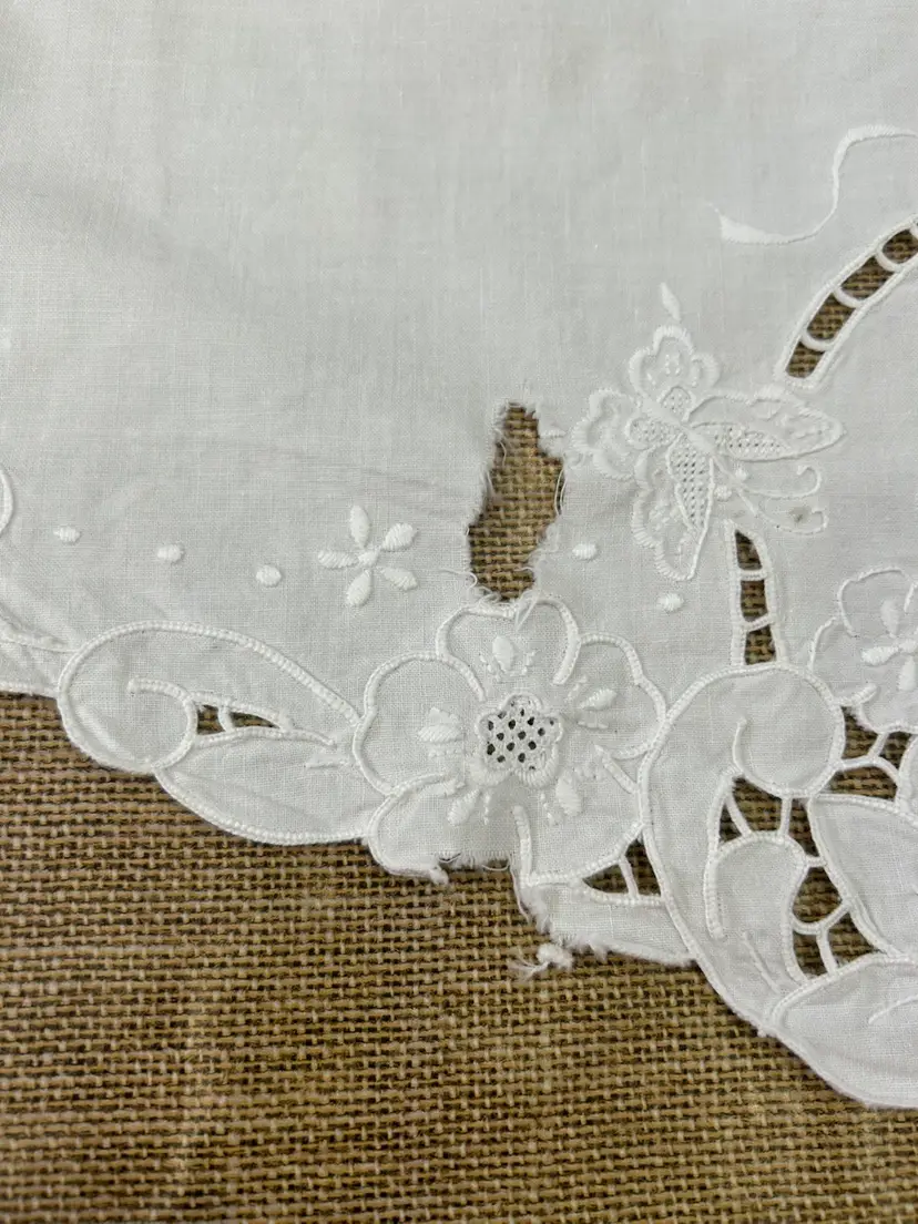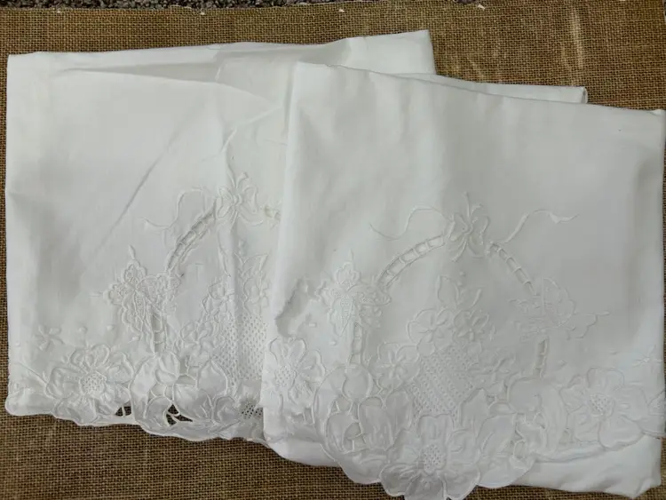 Enhance your projects with this Vintage White Battenburg pillowcases. Perfect for junk journaling, sewing, or home decor. One pillowcase is craft quality and the other is in excellent condition. Measures 19.5"x29".