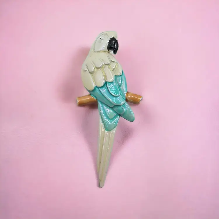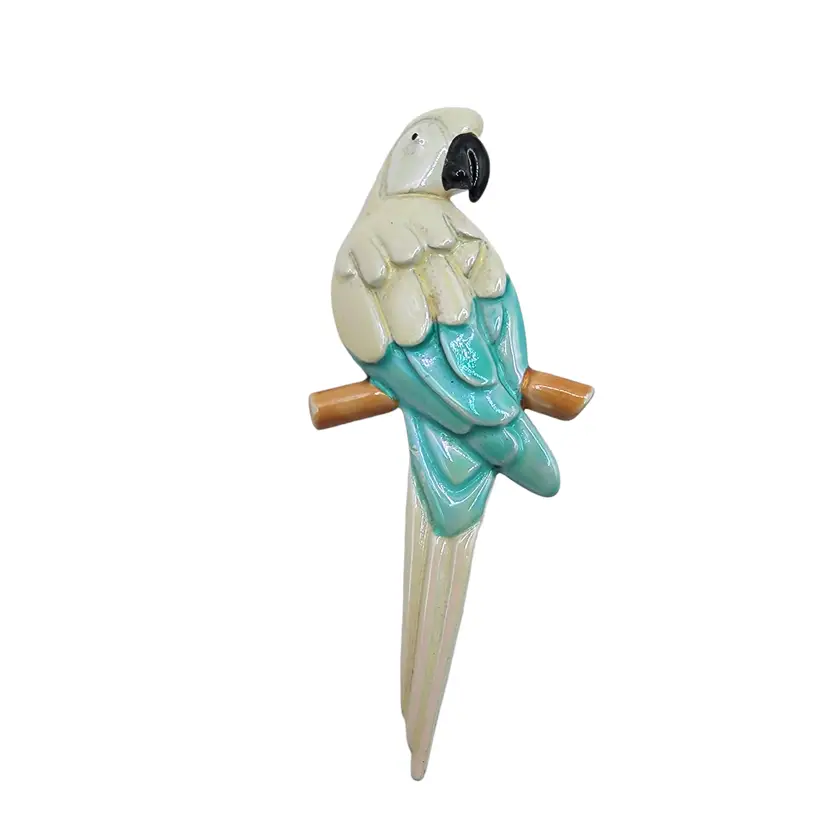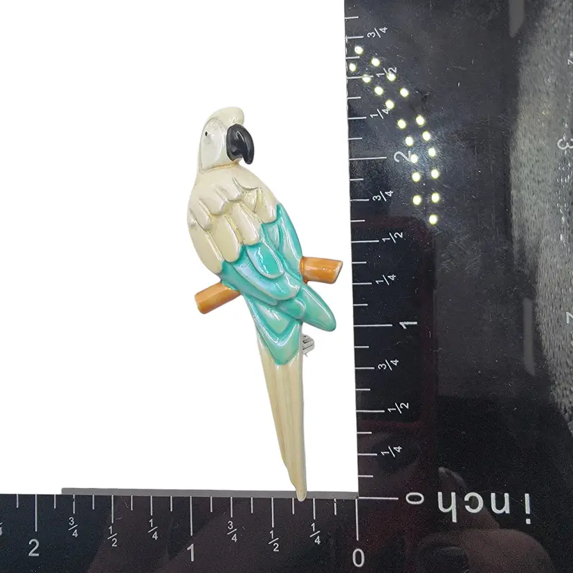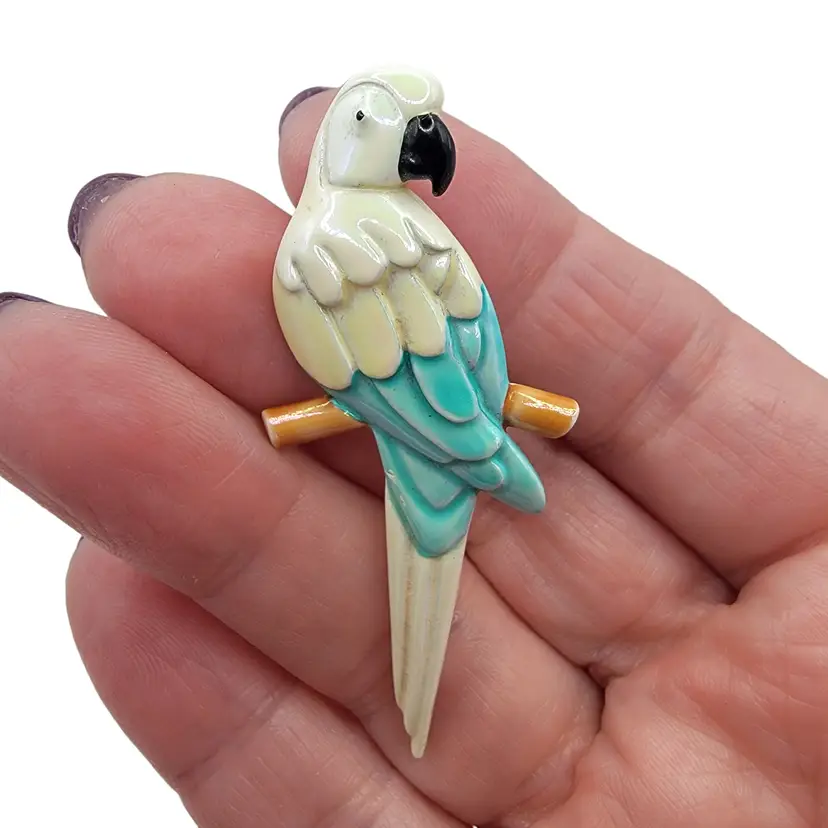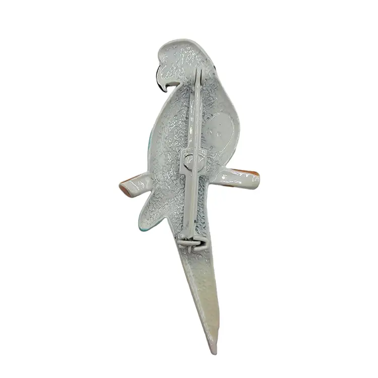 This is a beautiful enamel white & aqua blue parrot/mccaw pin/brooch. Condition: Excellent condition, no chips to the enamel; see photos Measurements approximately: 2.25" long, 1" wide SKU J-0313