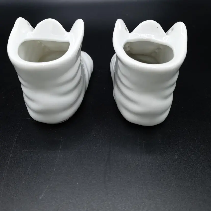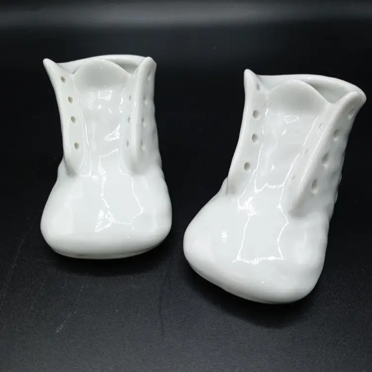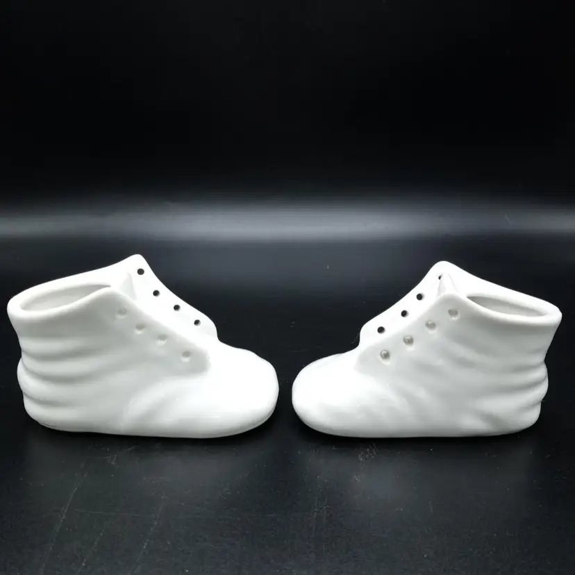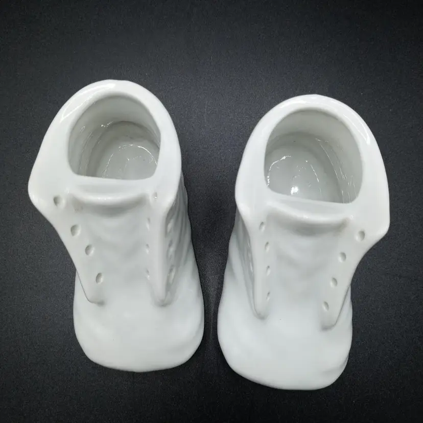 Fabulous pair of ceramic baby shoes made in Japan. Good condition with no chips or cracks. All that is needed is a beautiful ribbon for the laces. Could be used as a Christmas ornament, succulent plant holder or baby shower decor. Shoes are 4" in length and 2" wide.