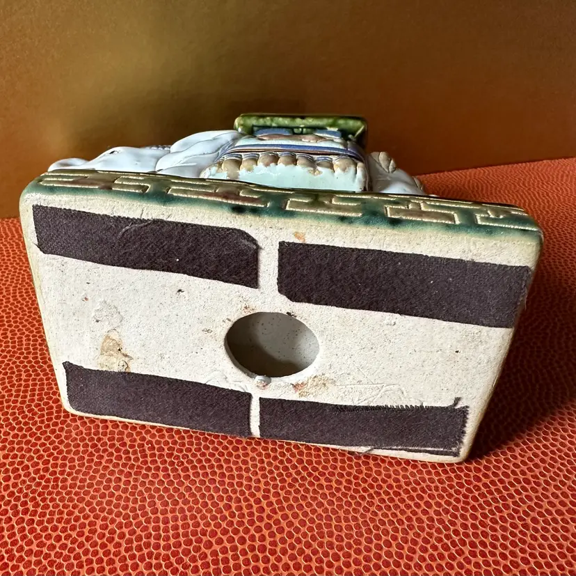 Highly detailed arty plant stand or coffee table decor or bookend. No chips or cracks has some felt on bottom. Glazes are beautiful colors.