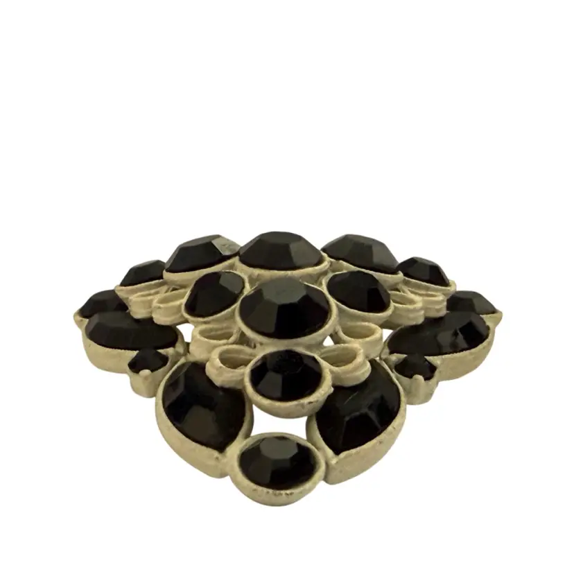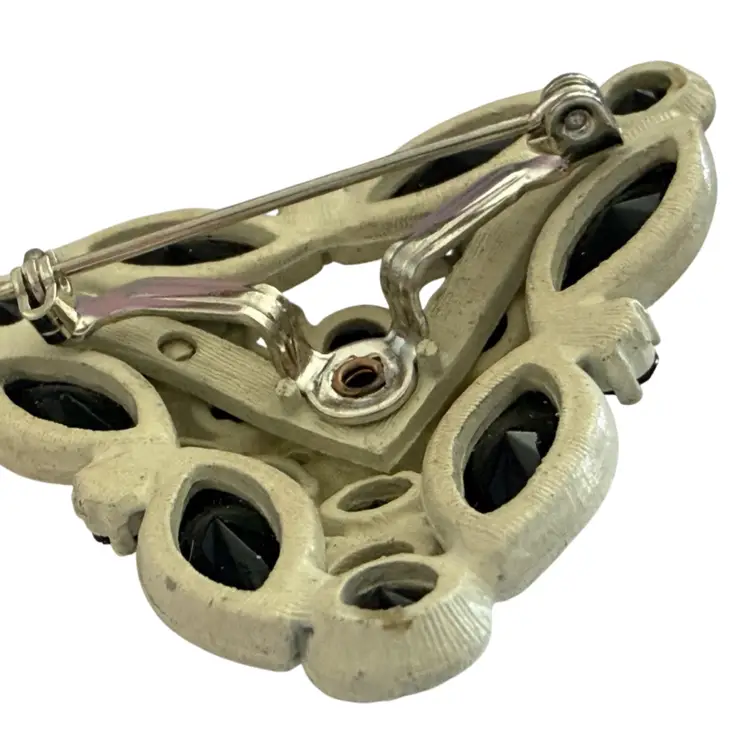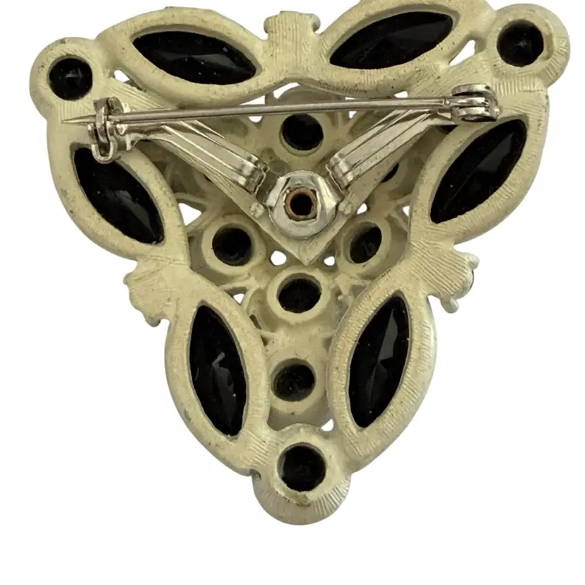 Vintage white metal with black faceted rhinestones 2”. Brooch/pendant