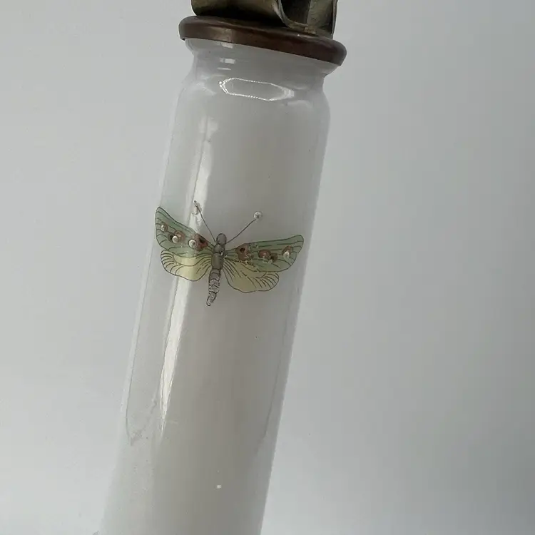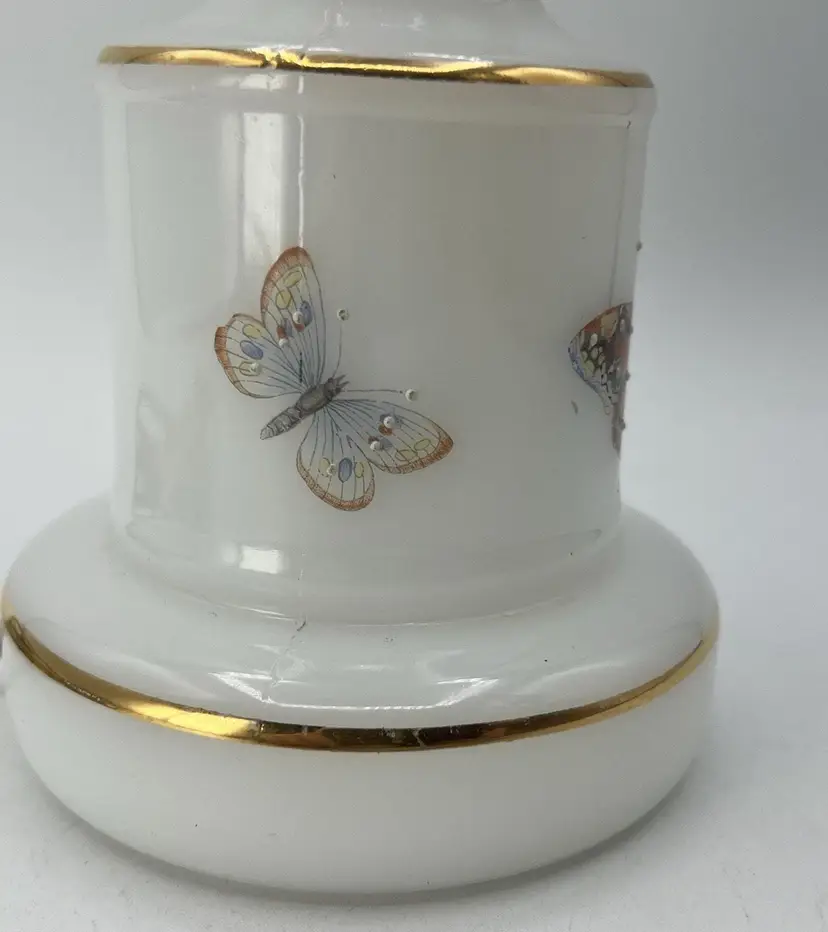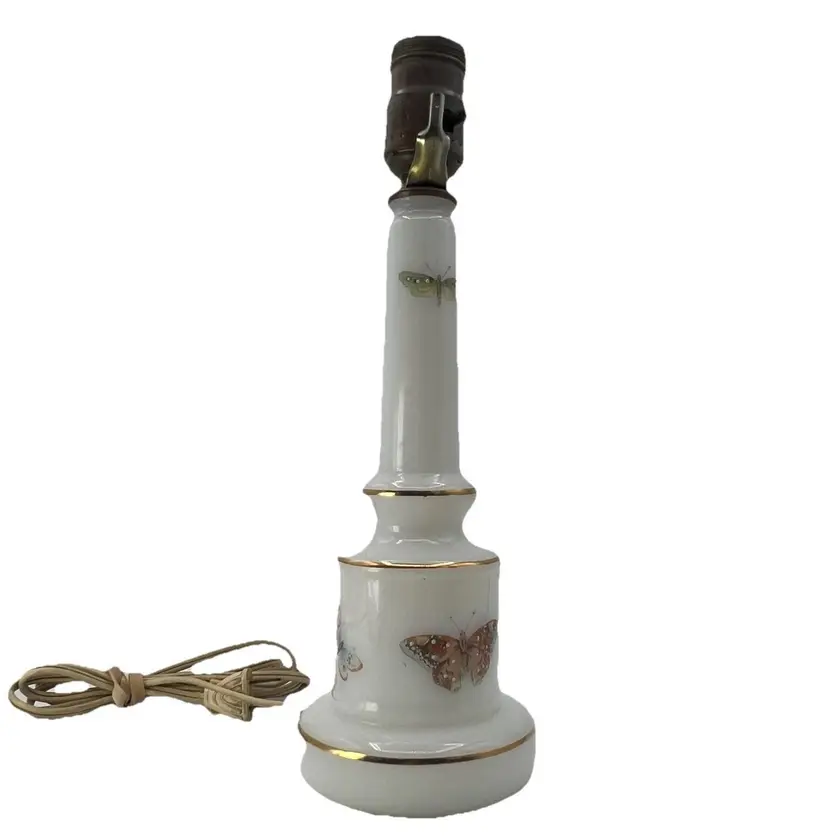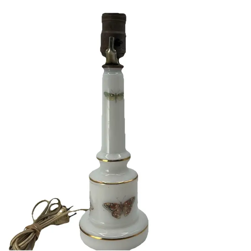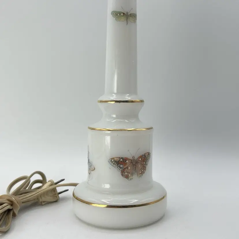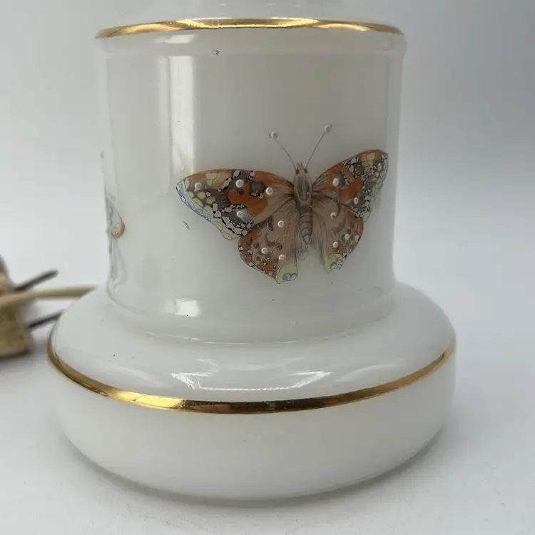 Vintage White Milk Glass Butterfly Accent Table Boudoir Lamp Base ONLY 12"