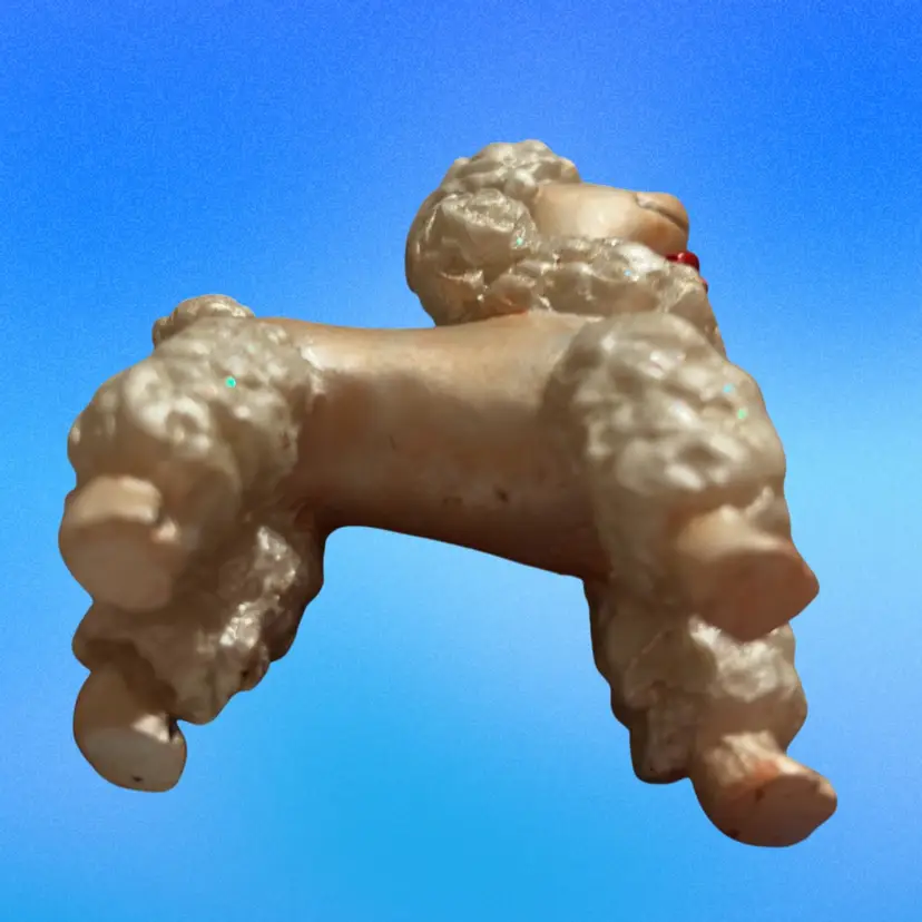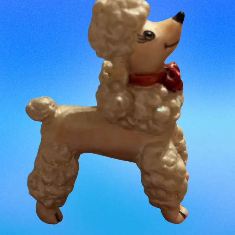 This is a vintage ceramic "spaghetti" poodle figurine, possibly from Japan, likely dating to the 1950s or 1960s.