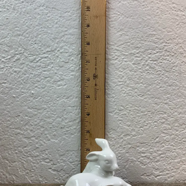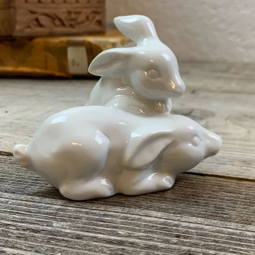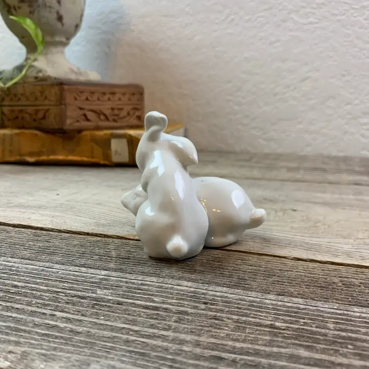 Vintage White Rabbits/Bunnies Pair Miniature Ceramic Figurine. Great Condtion Most items will be shipped out the next business day after payment, excluding the weekends and holidays. ALL ORDERS SHIP WITHIN 3 BUSINESS DAYS. All Measurements are Approximate HAND WASHING IS RECOMMENDED FOR ALL VINTAGE ITEMS. I will be diligent and accurately describe all of the listings. Also if applicable the photos will show any scratches, marks, cracks, chips, rust, and patina.