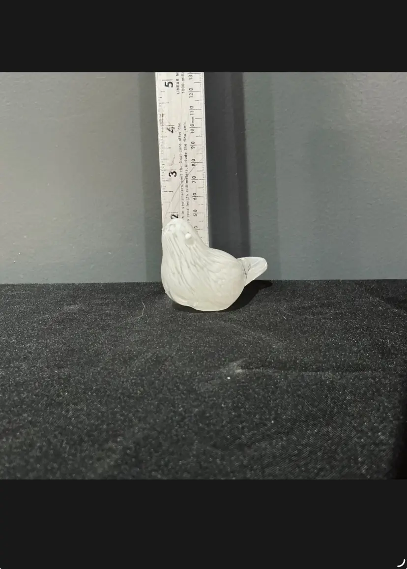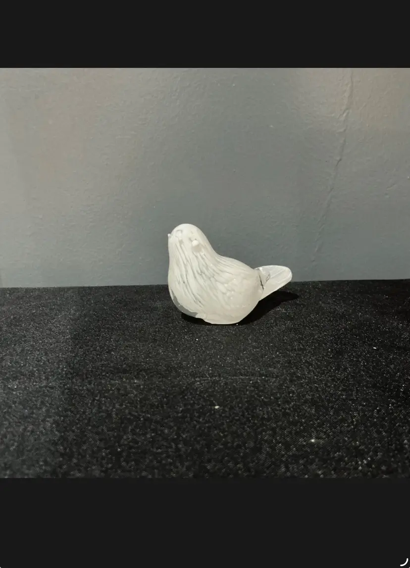 This lovely vintage art glass bird figurine is crafted with clear glass infused with delicate white swirls, giving it a feathered, almost marbled effect. Unlike frosted glass, this piece has a glossy surface with the color embedded within, resulting in beautiful depth and dimension when it catches the light.