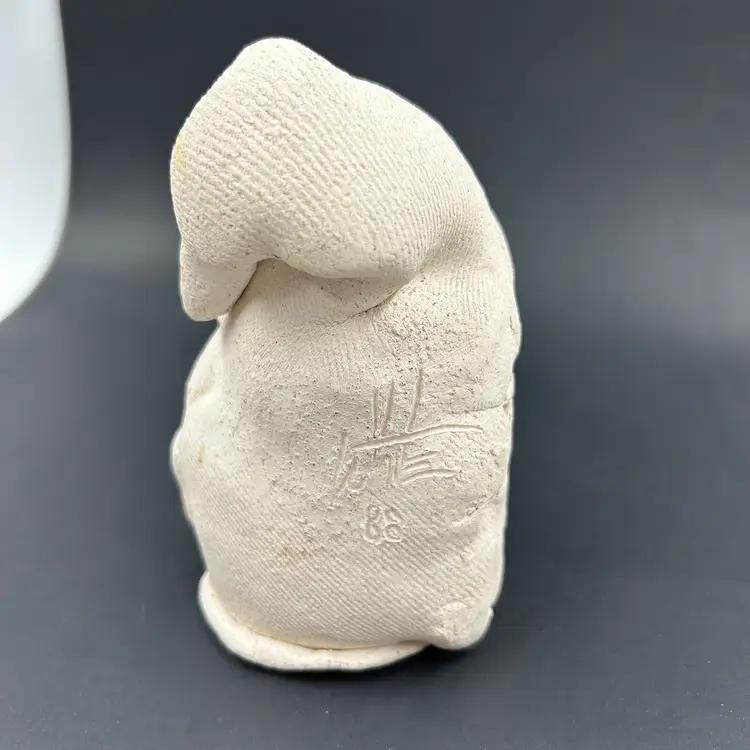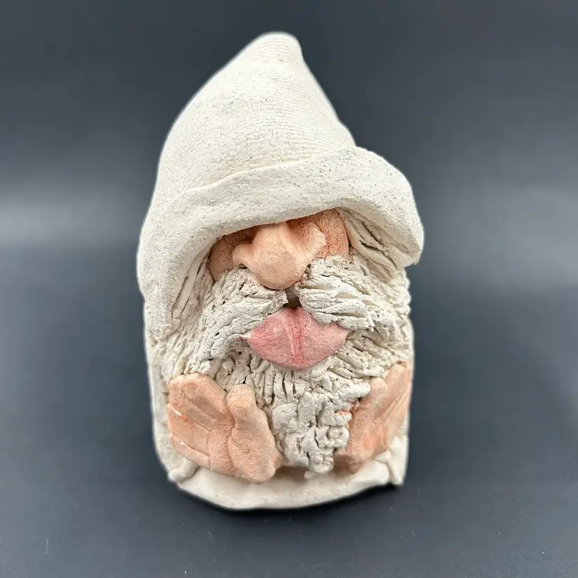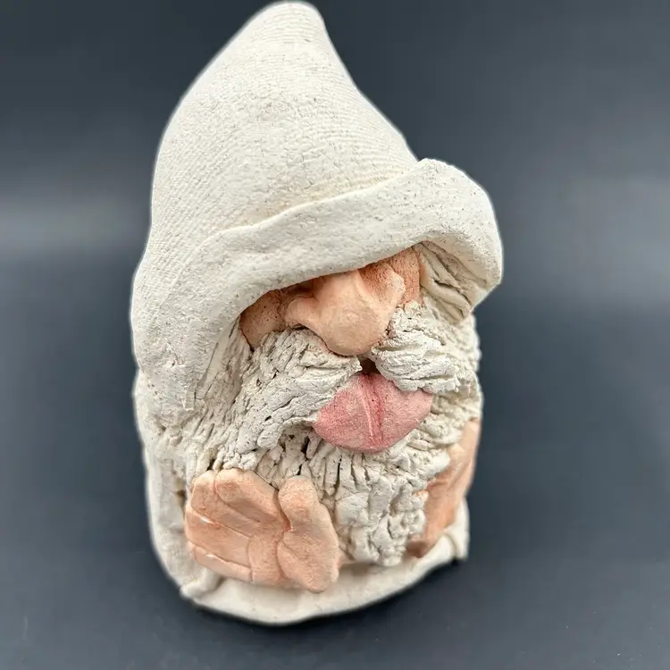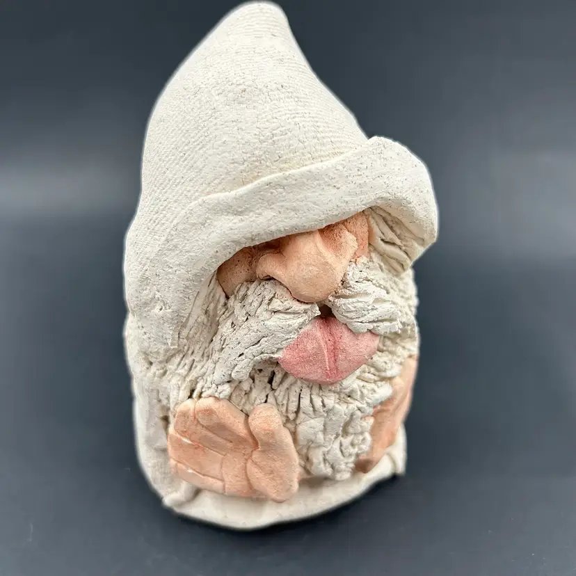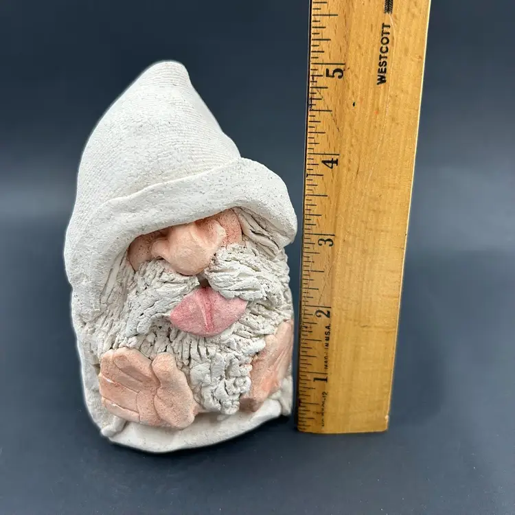 Vintage White Wizard Clay Sculpture By Don White He Is Holding His Hands Out And Sticking Stick Out His Tongue. Signed by the Artist and year made 88. Approximately 5” T