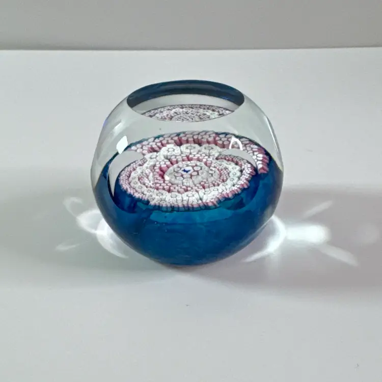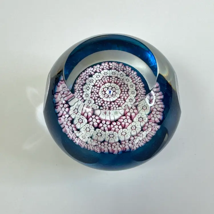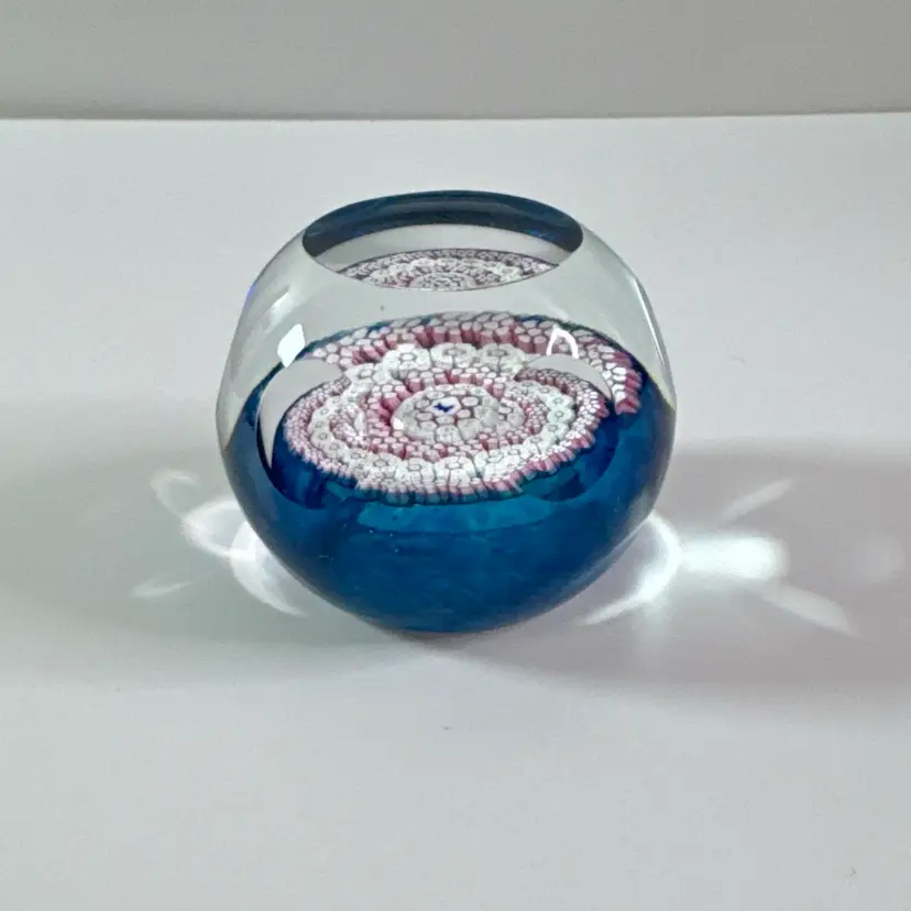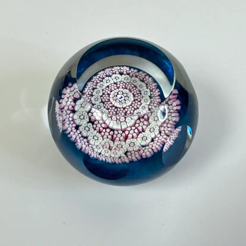 Beautiful Vintage Whitefriars/Caithness Millefiori Butterfly design faceted paperweight.