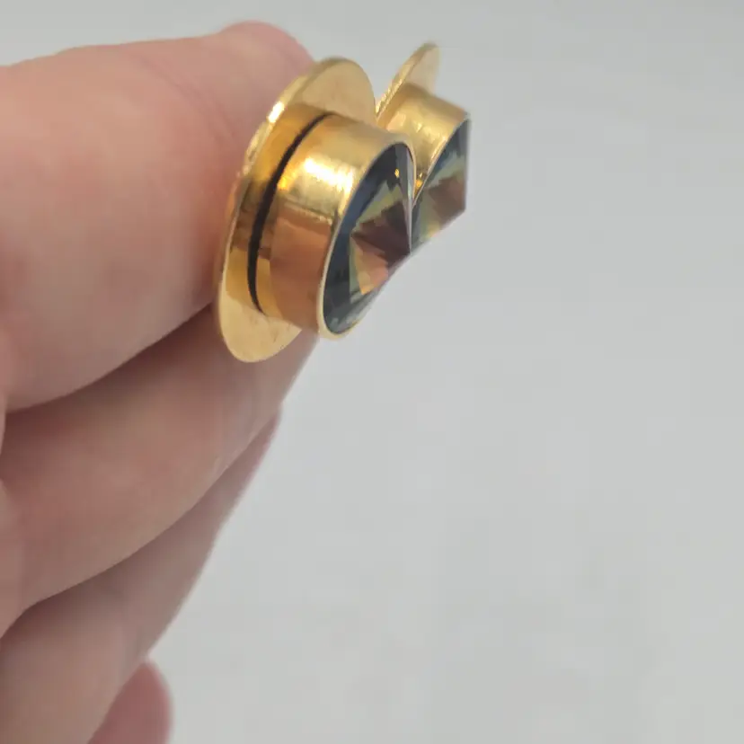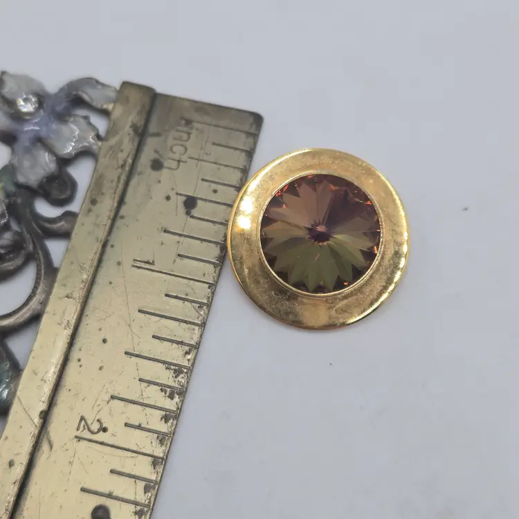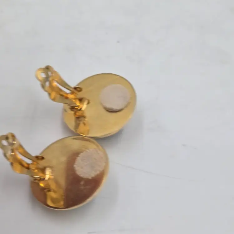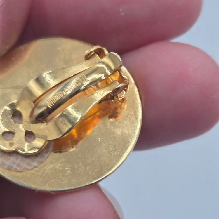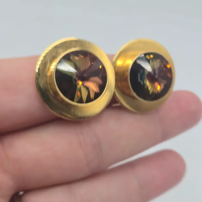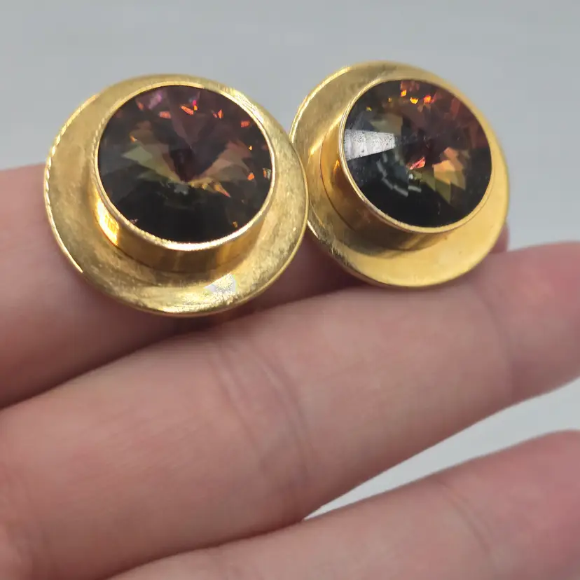 Vintage Whiting & Davis Gold Tone Bezel Watermelon Rivoli Clip On Earrings