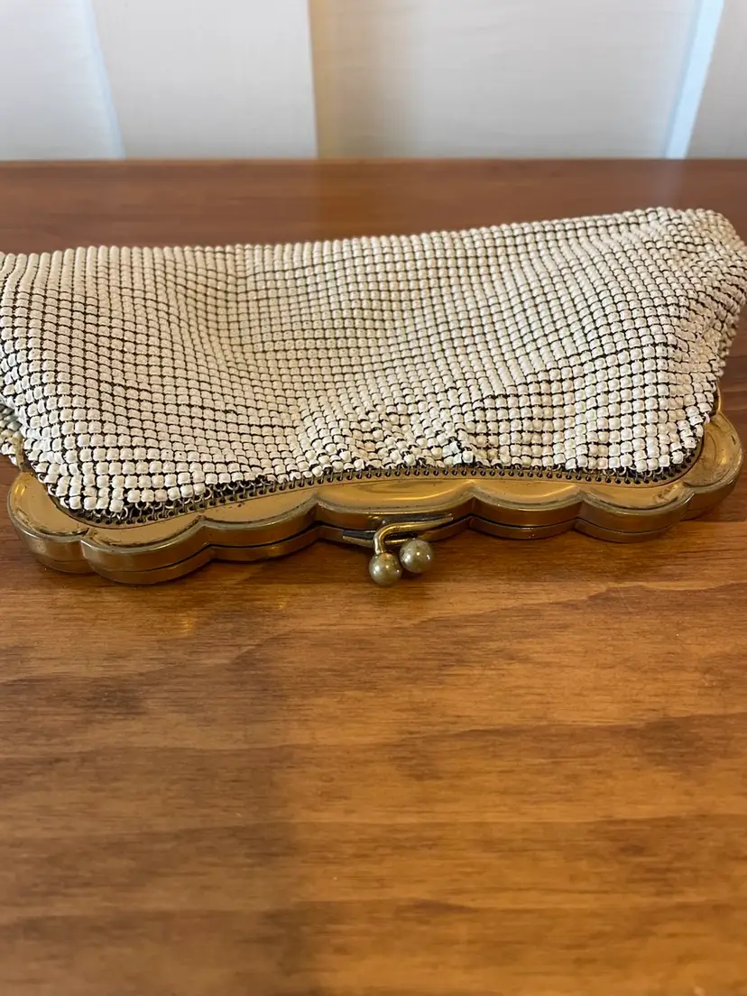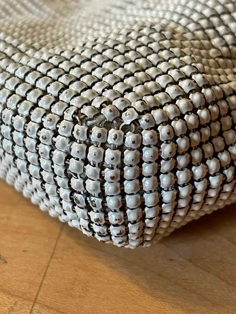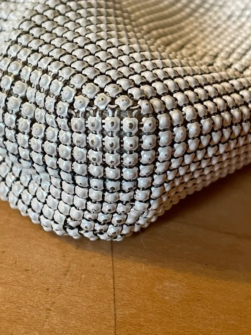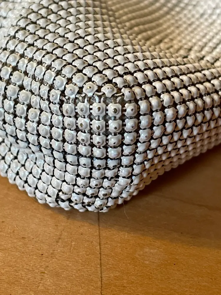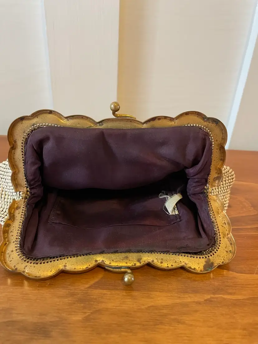 Good vintage condition All metal mesh is intact with a tiny bit of wear at the corners. Metal kiss closure with some patina on the inside 4.5”x8” 0000625