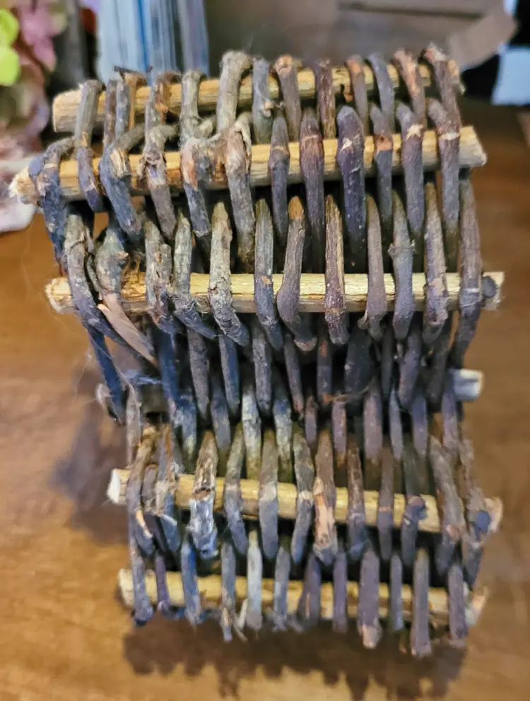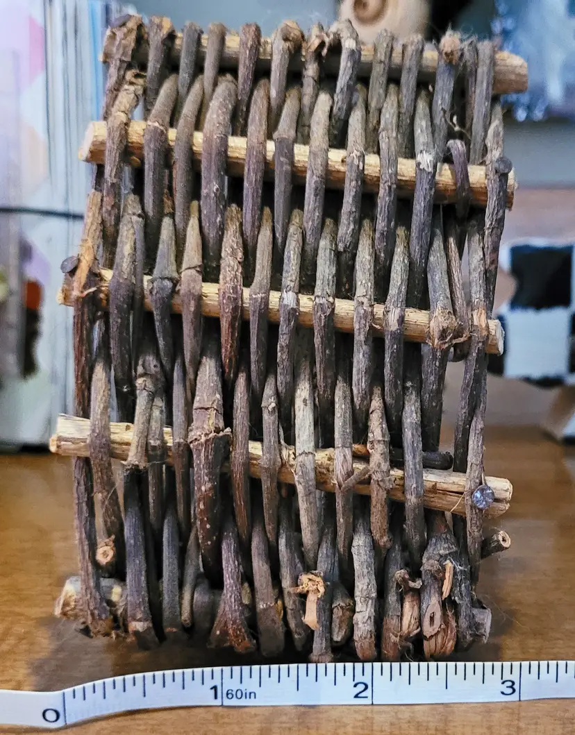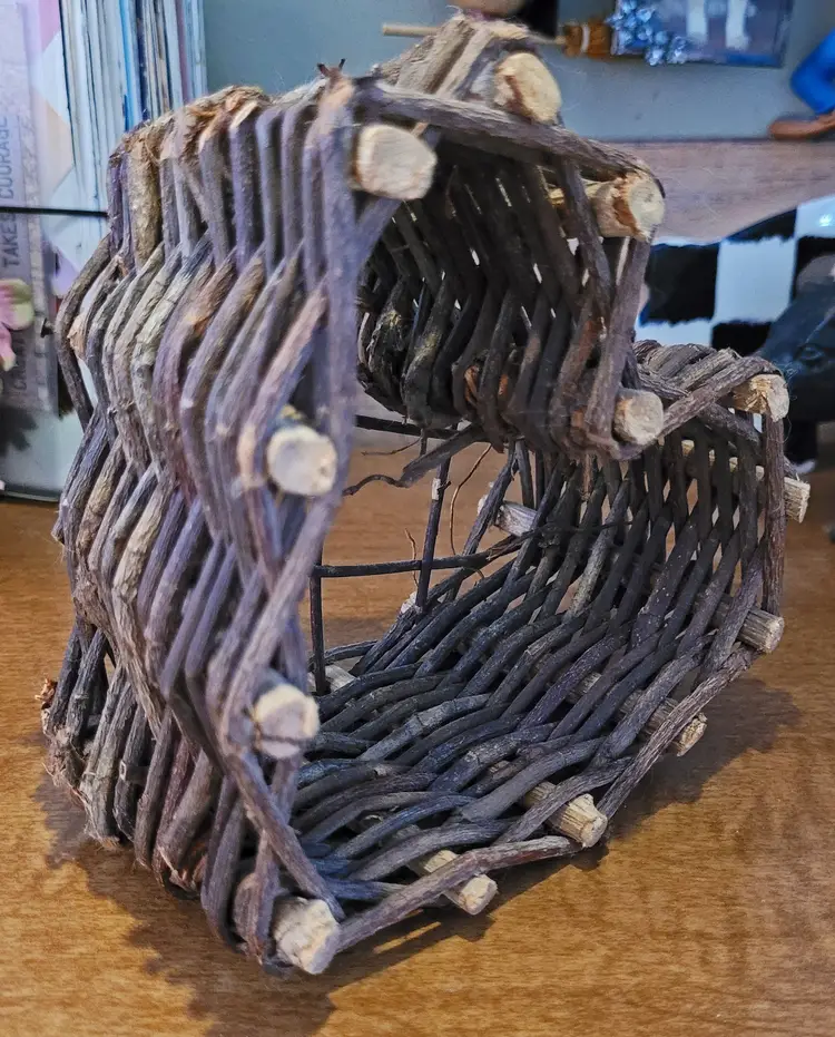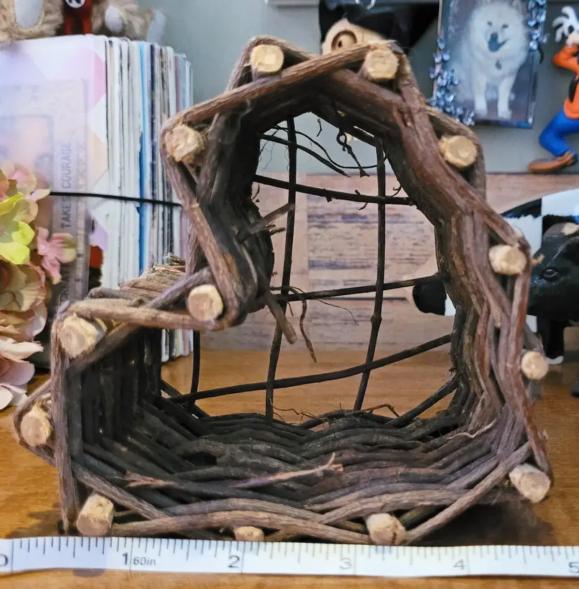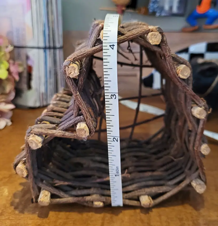 A cute little wall hanger or shelf sitter. Maybe, use it as part of larger design. I had it hanging on a kitchen wall. From a smoke free home, please refer to the pictures for its condition and size. Approx: 5.5x5x3