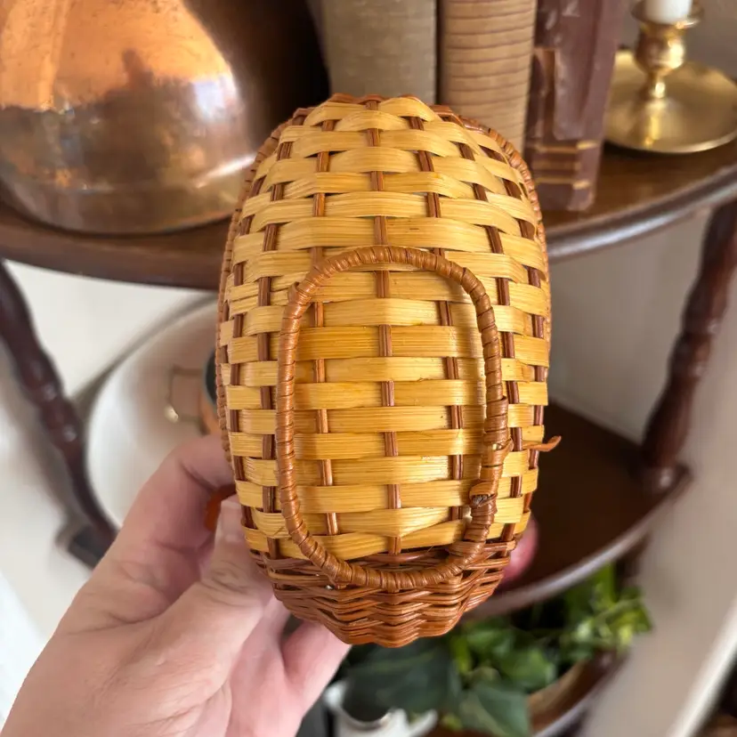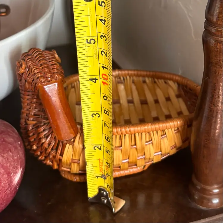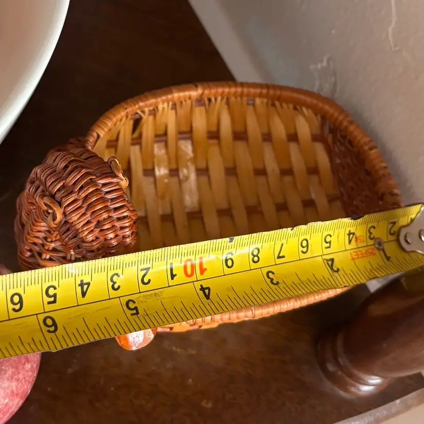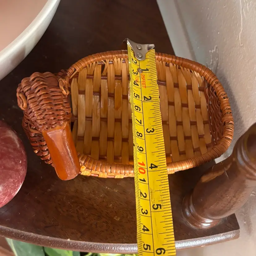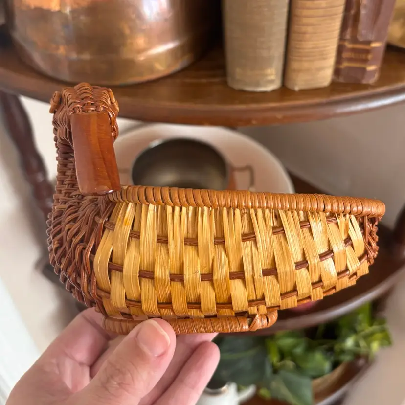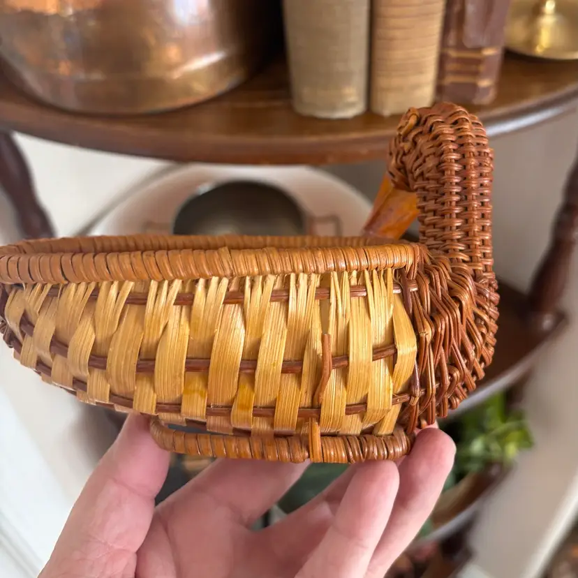 Darling duck basket w/wooden beak 5”tall x 6”long x 4”wide Vintage wear as shown- no damage
