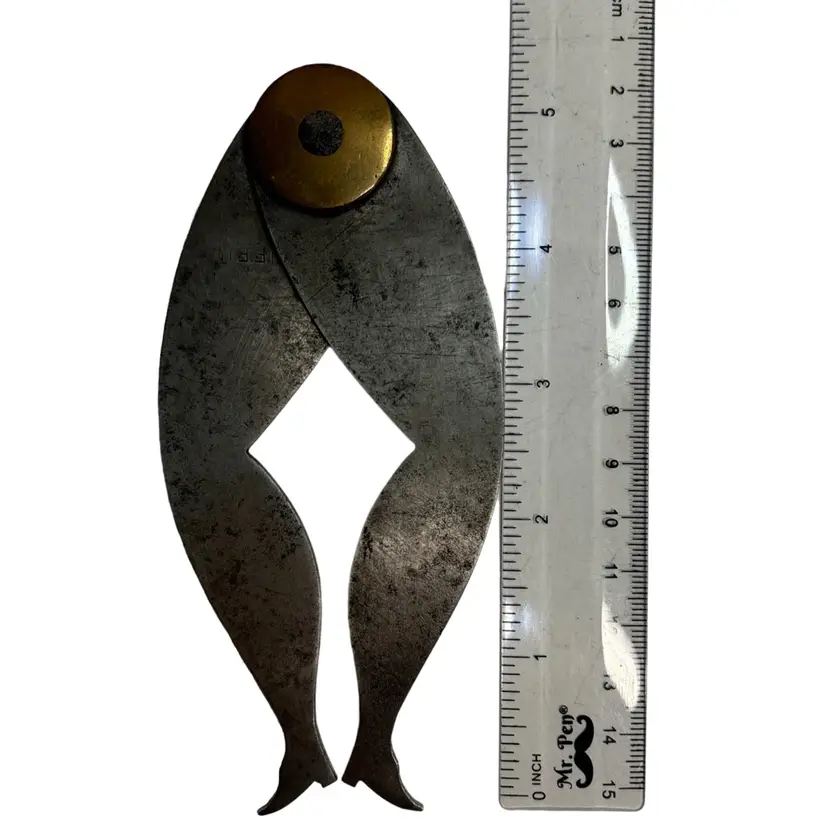 This vintage wide leg lady dancing 6" engraved steel calipers is a unique addition to any collection. The antique folk art piece was crafted in the United States and features intricate details of a dancing lady. The calipers are made of sturdy steel and are perfect for measuring and drafting.