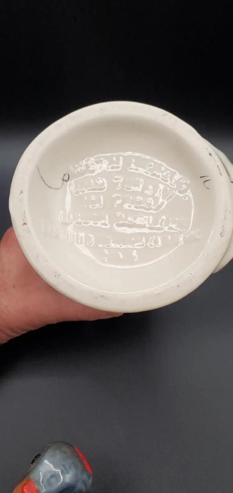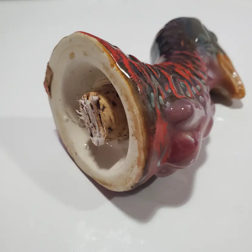 This decanter is in very good condition. No cracks, chips or crazing. It appears that a part of the cork is missing but it still fits firm and tight.